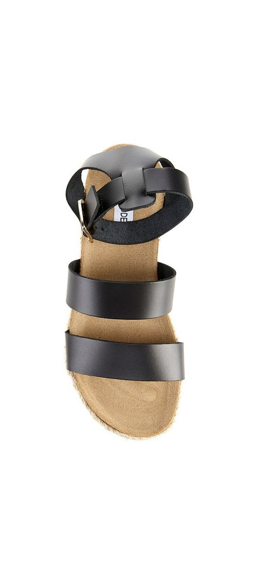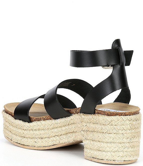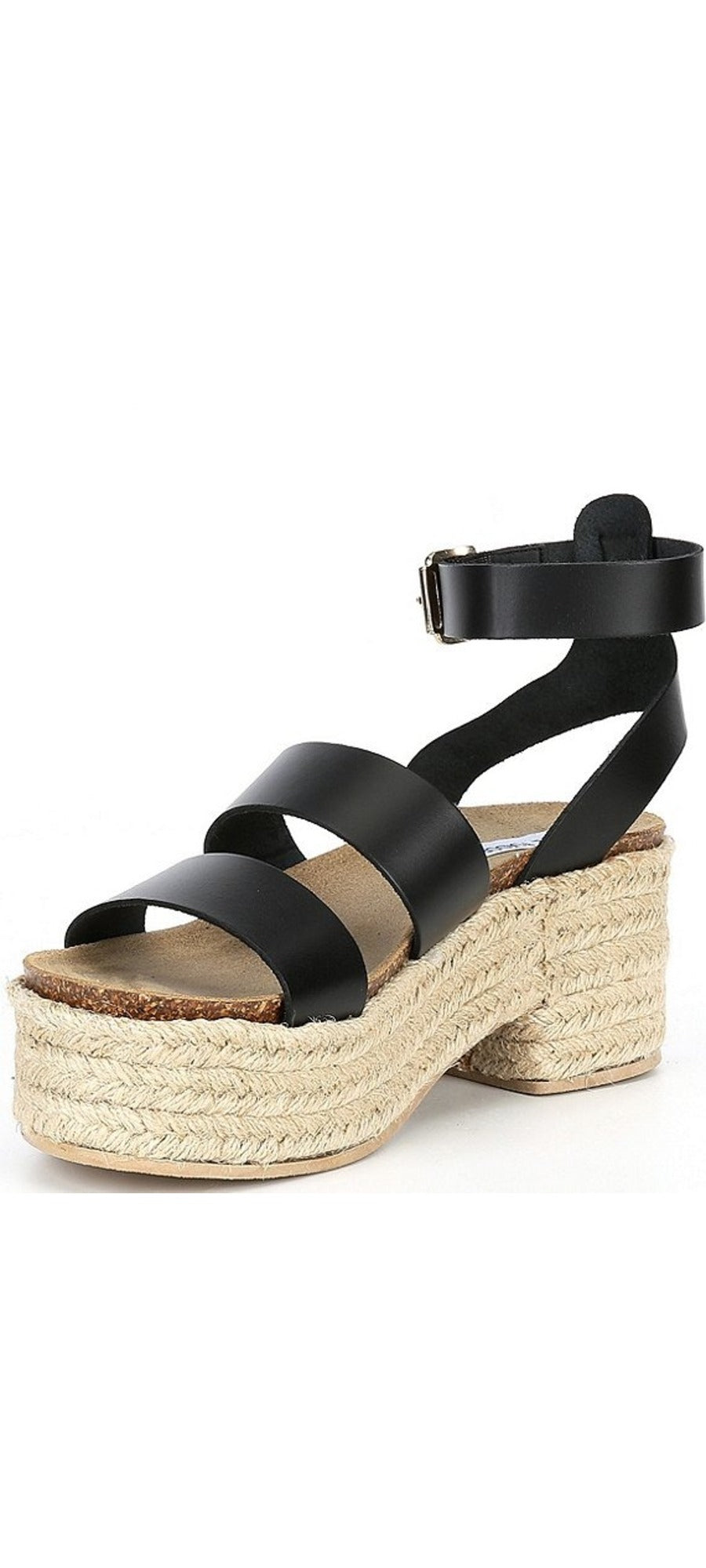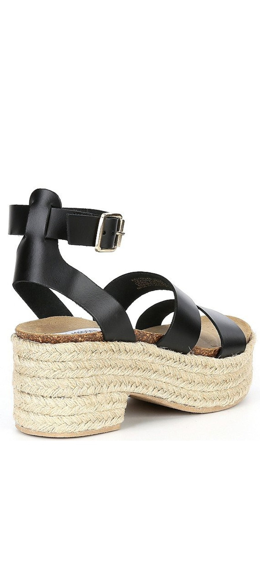 Steve Madden Kelton Black Leather Ankle Strap Open Rounded Toe Heeled Sandals