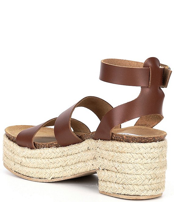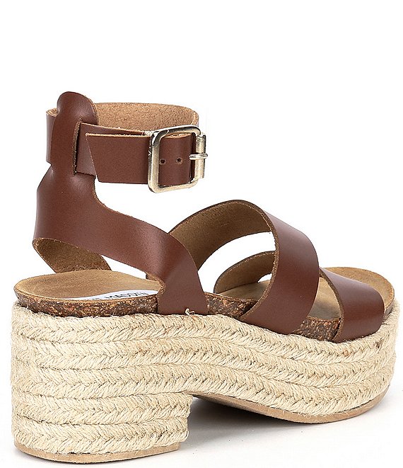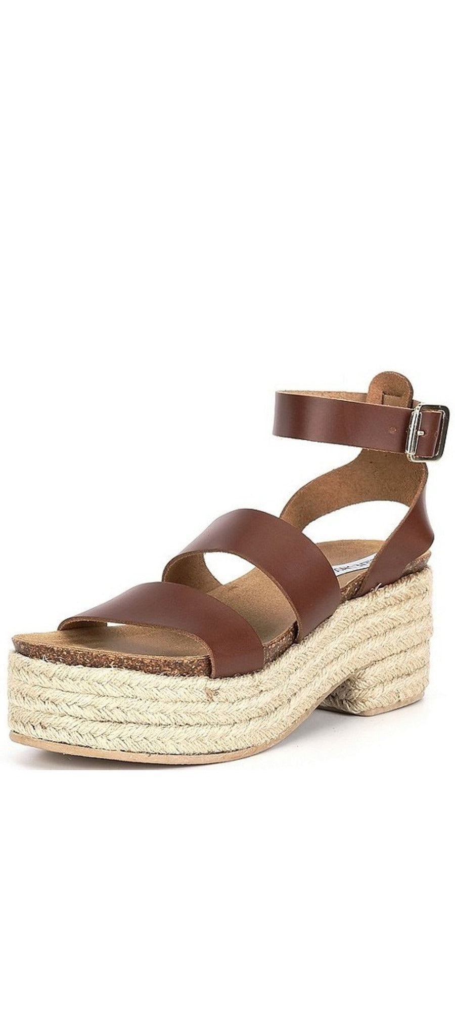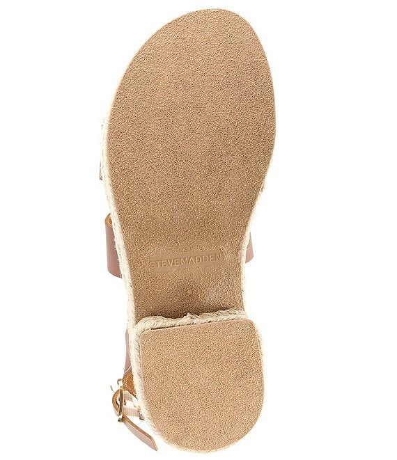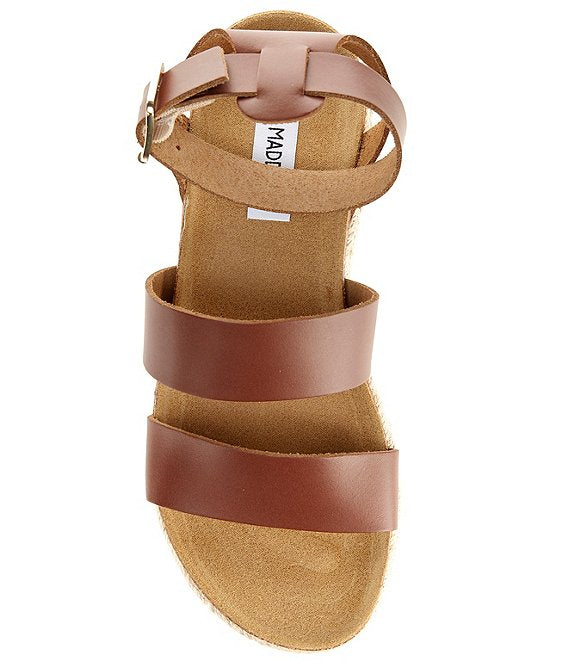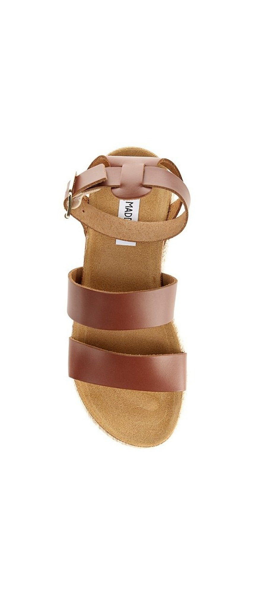 Steve Madden Kelton Cognac Leather Ankle Strap Open Rounded Toe Heeled Sandals