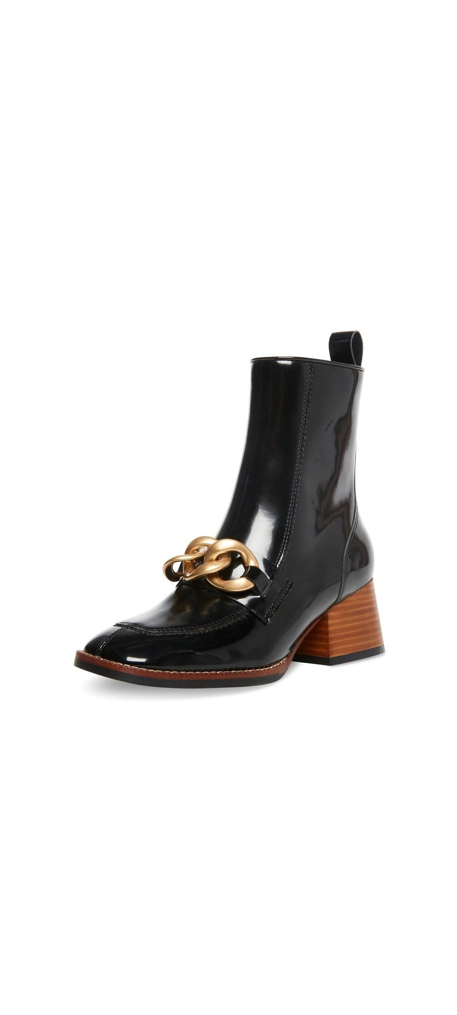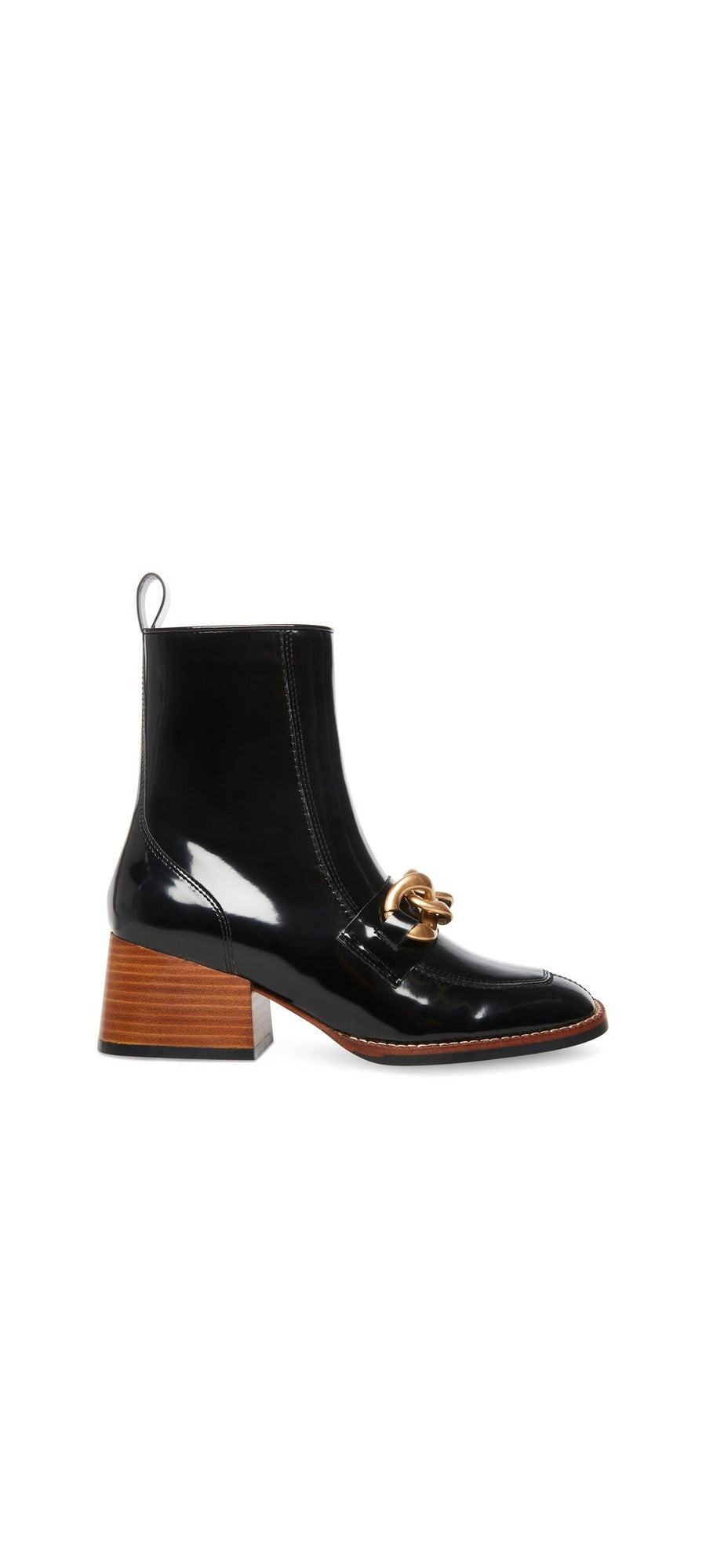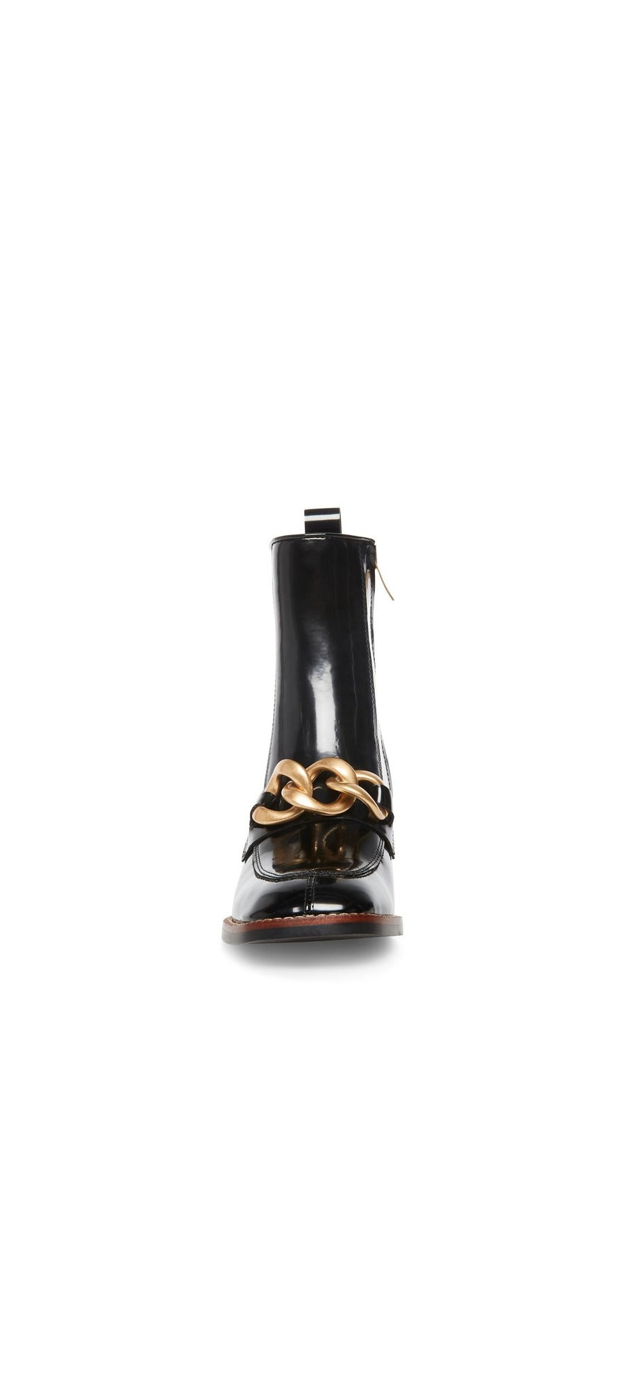 Steve Madden Loreen Mid-calf Shaft Chunky Gold Detail Heel Ankle Booties Black