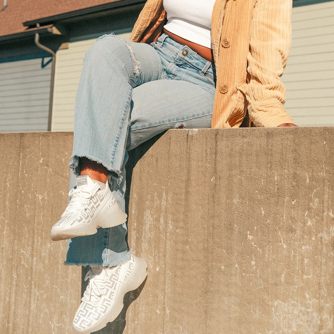 Steve Madden Maxima Sneakers Women Lace Up Rhinestone Chunky Low Top Knit Runner