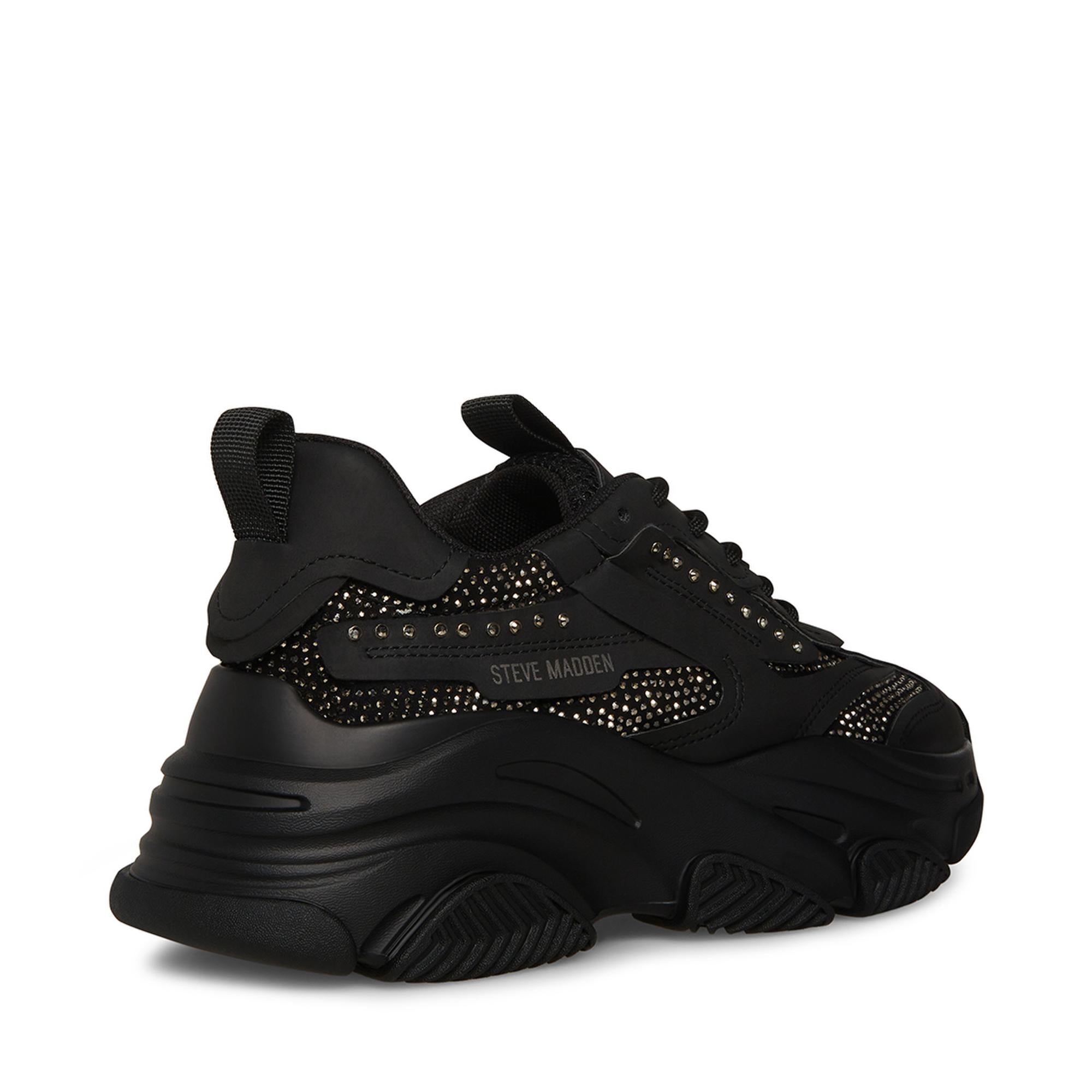 Steve Madden Possession Black Rhinestone Embellished Lace Up Low Top Sneakers