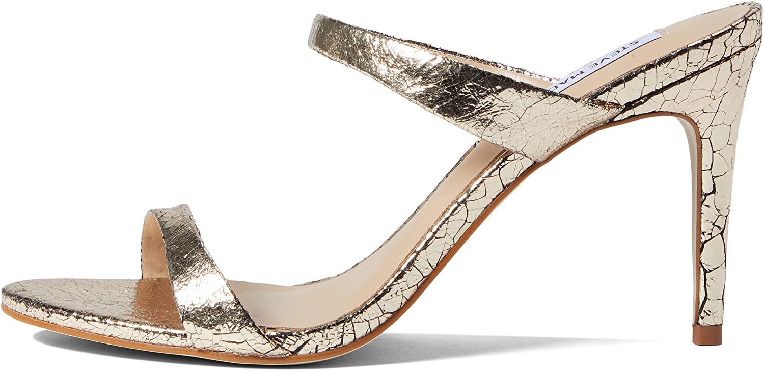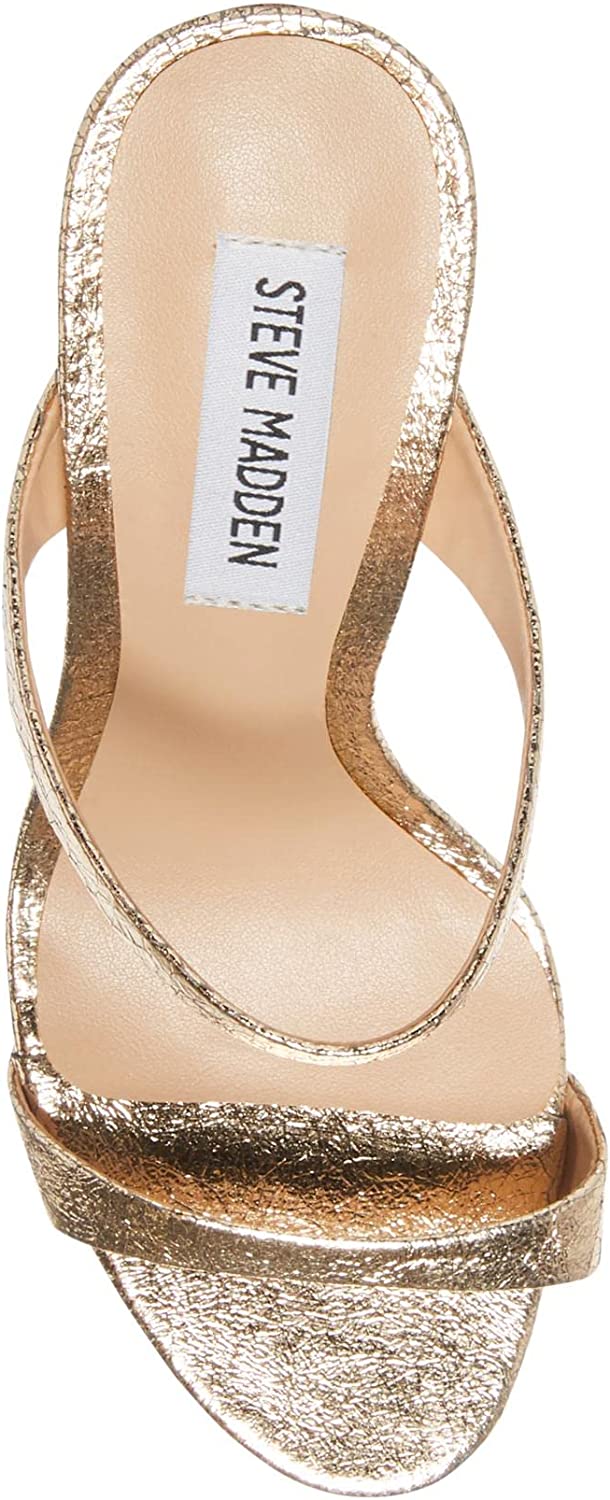 Steve Madden Rosalina Gold Leather Stiletto Heel Open Toe Slip On Heeled Sandals