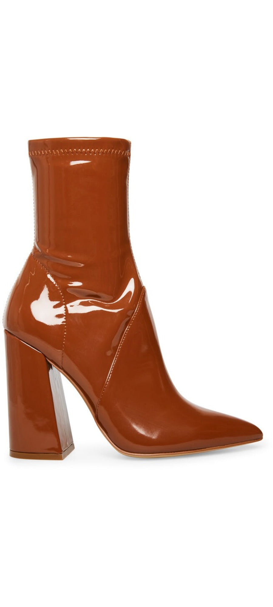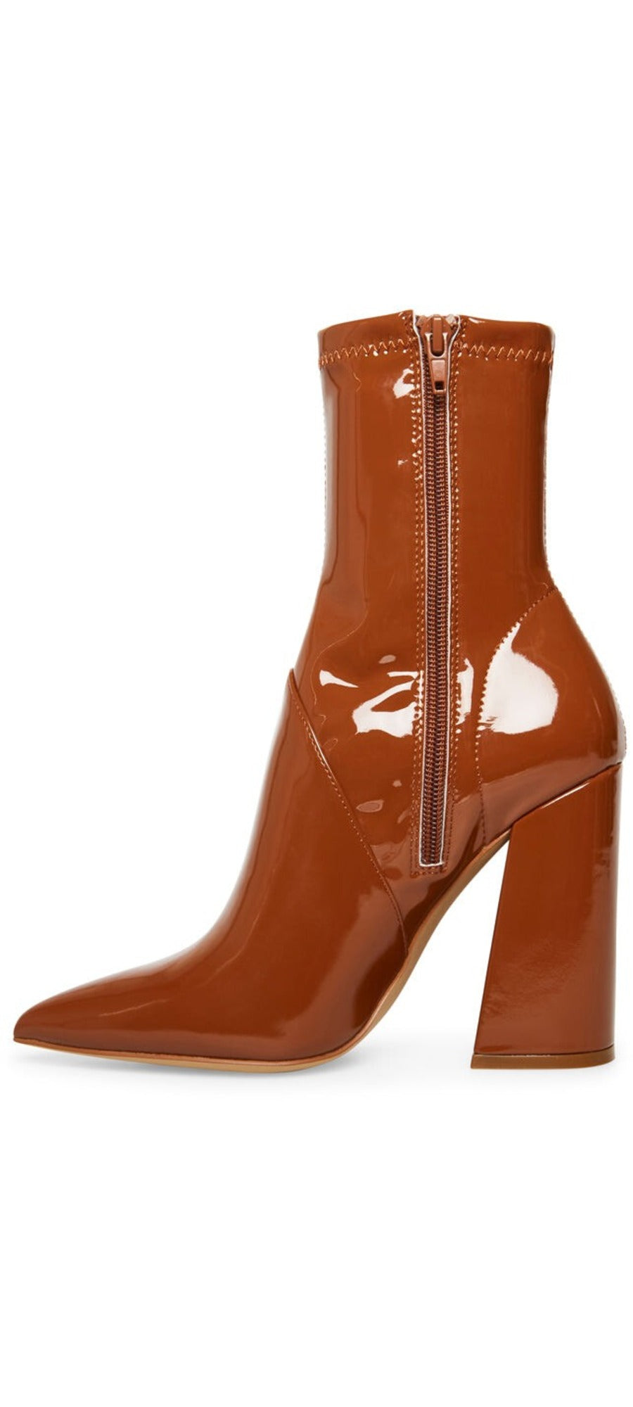 Fit for a fashion-lovin femme fatale, the SLADE boot stands out with a sharp pointy-toed silhouette and sleek shiny surfaces. A stretchy shaft makes for a second-skin fit and a tall flared heel seductively lifts.