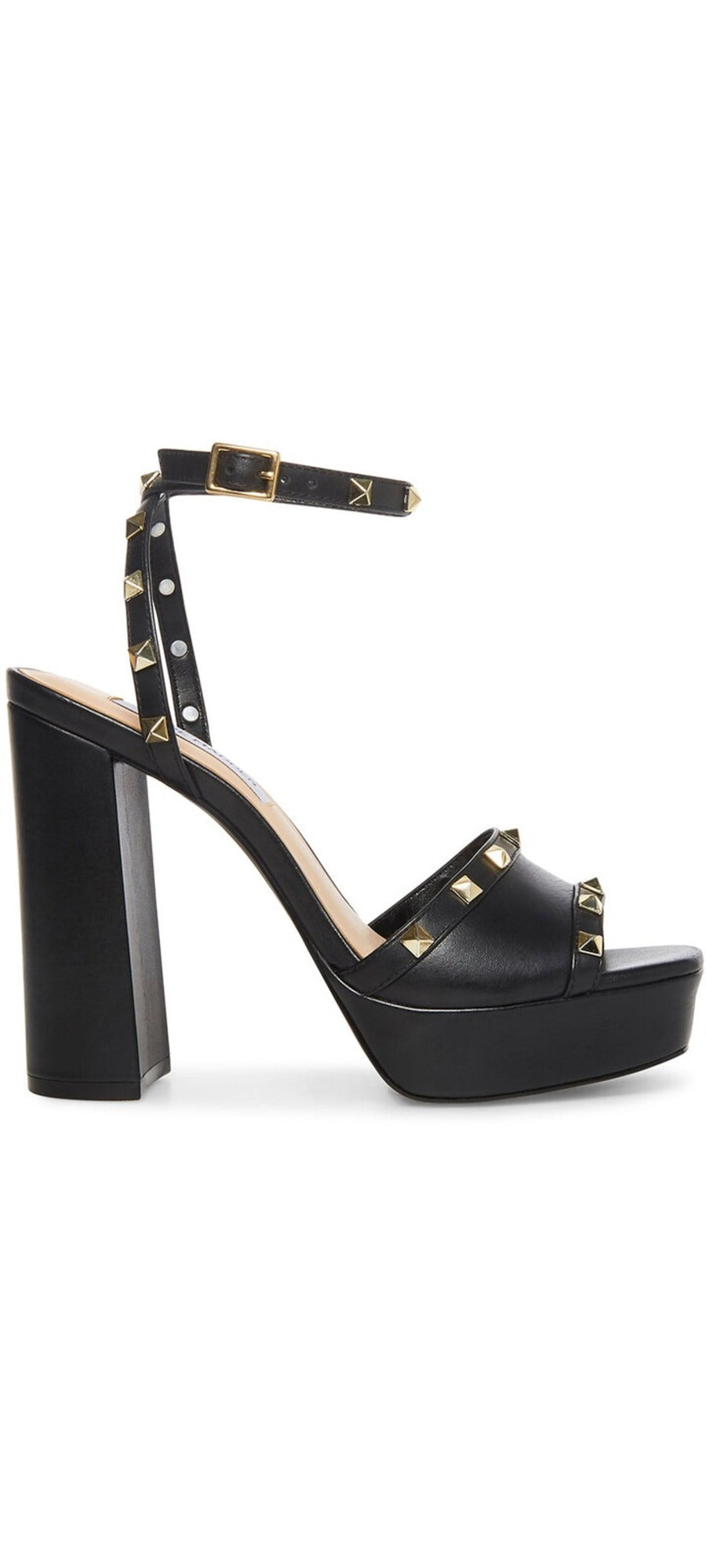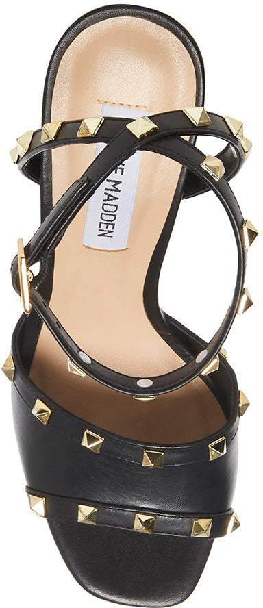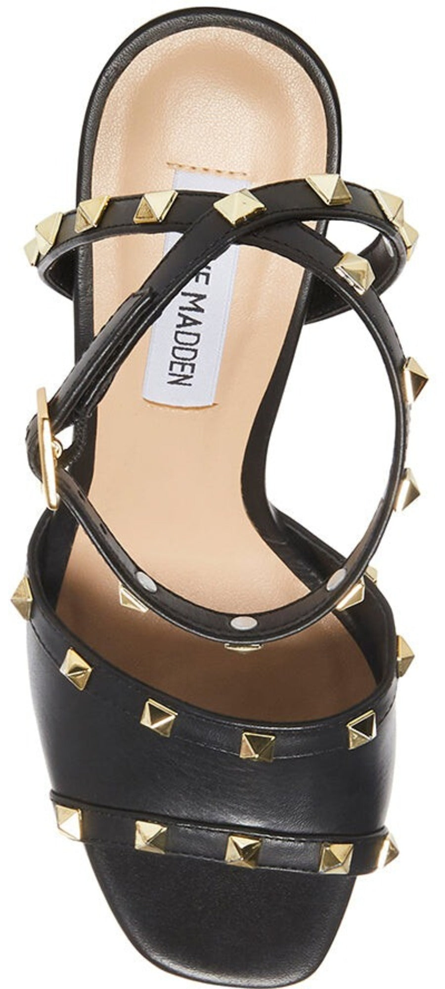 Steve Madden Tabari Black Leather Ankle Strap Open Toe Embellished Heeled Sandal