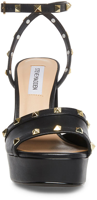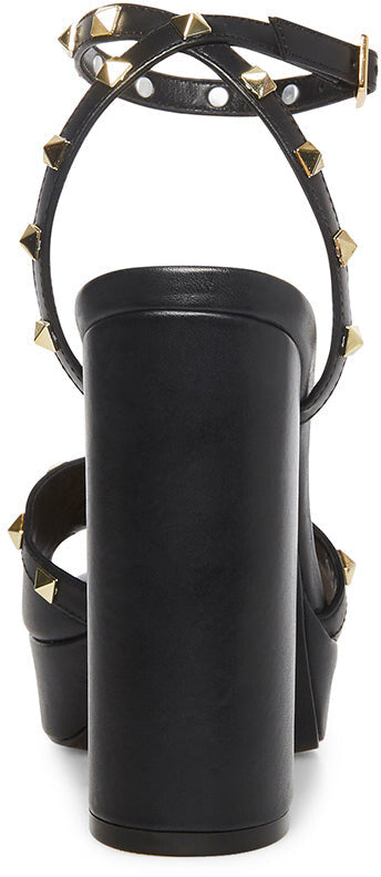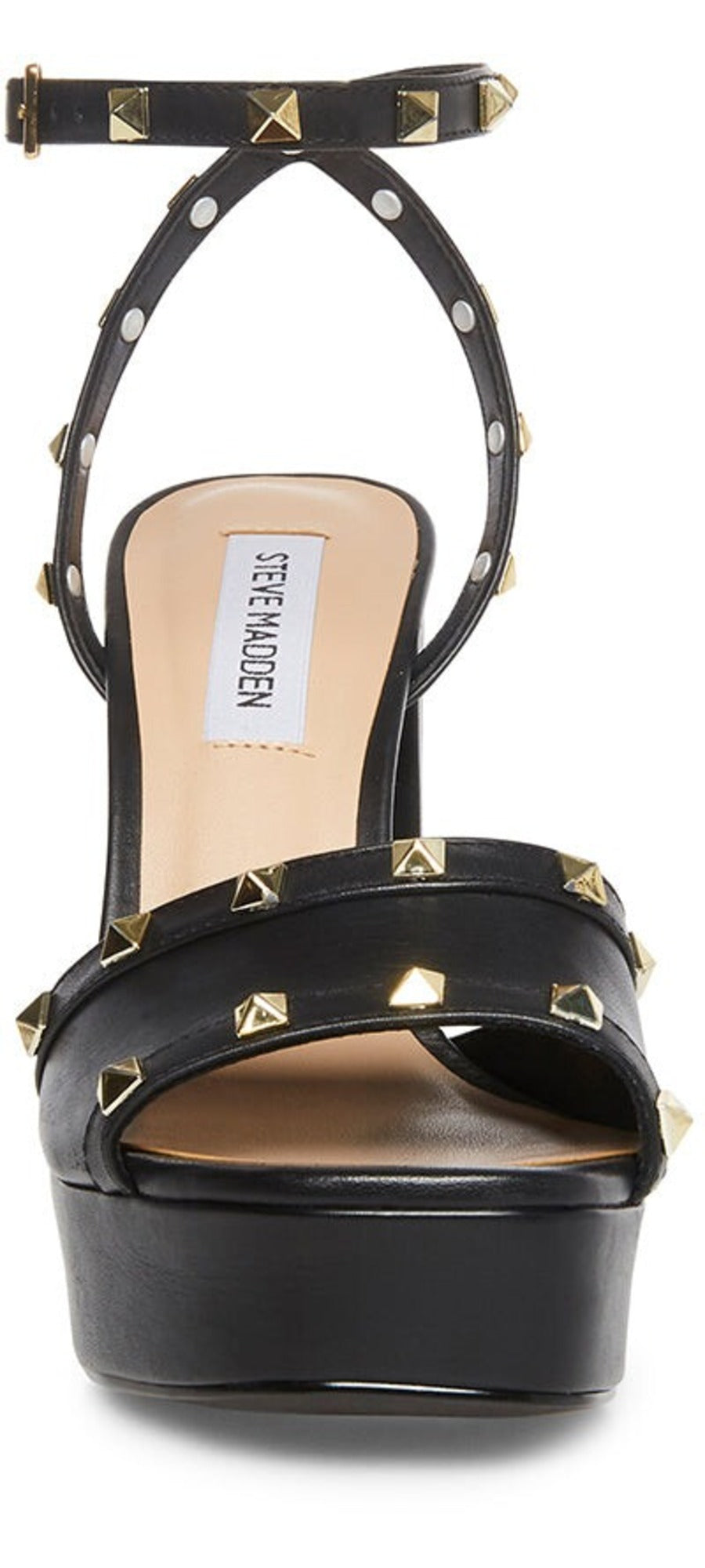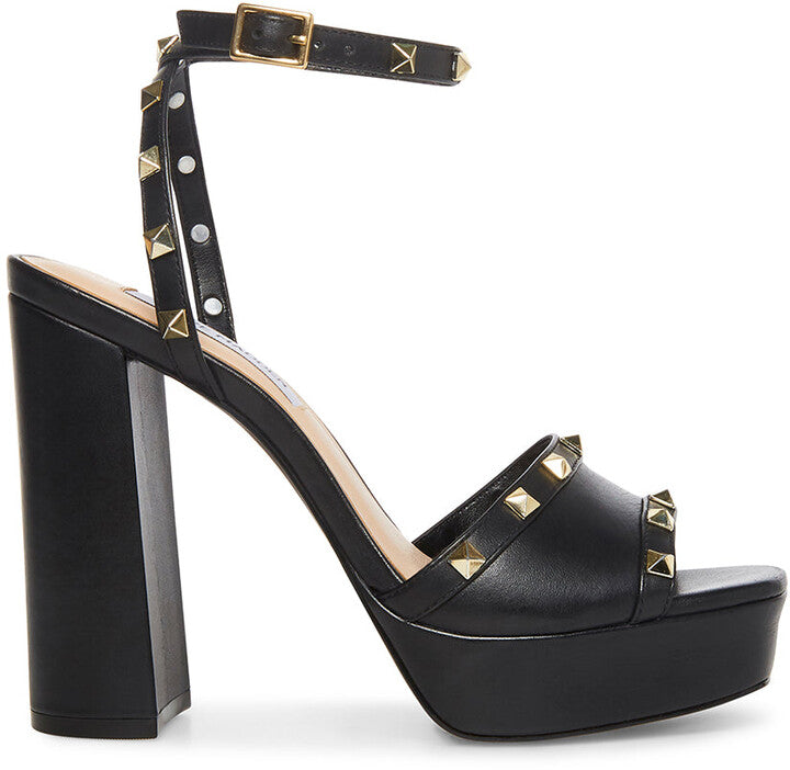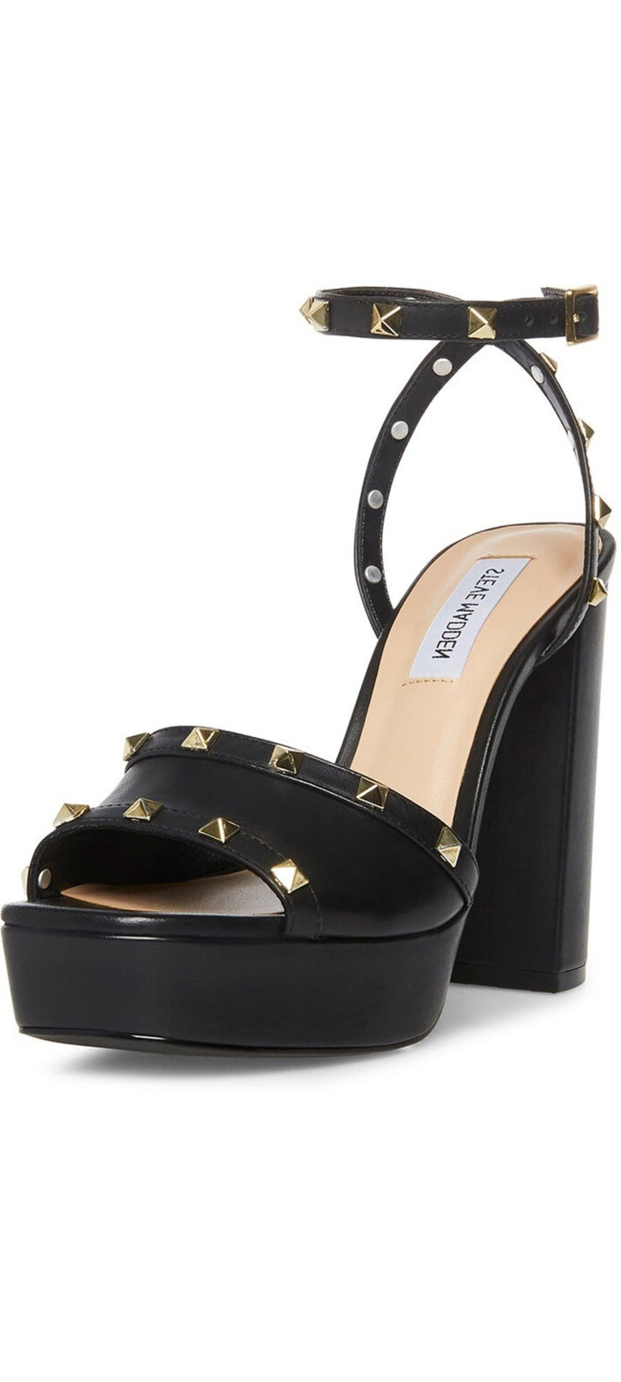Steve Madden Tabari Black Leather Ankle Strap Open Toe Embellished Heeled Sandal