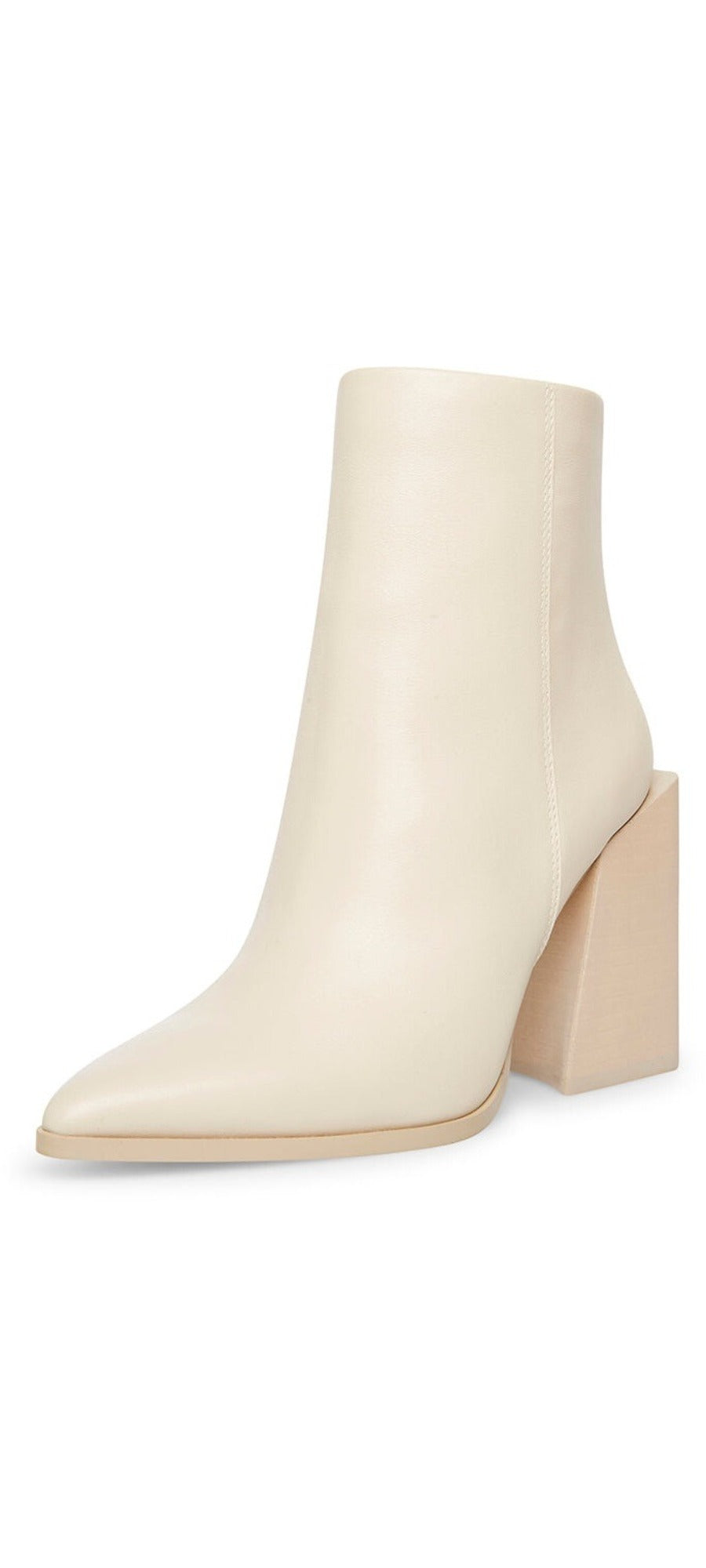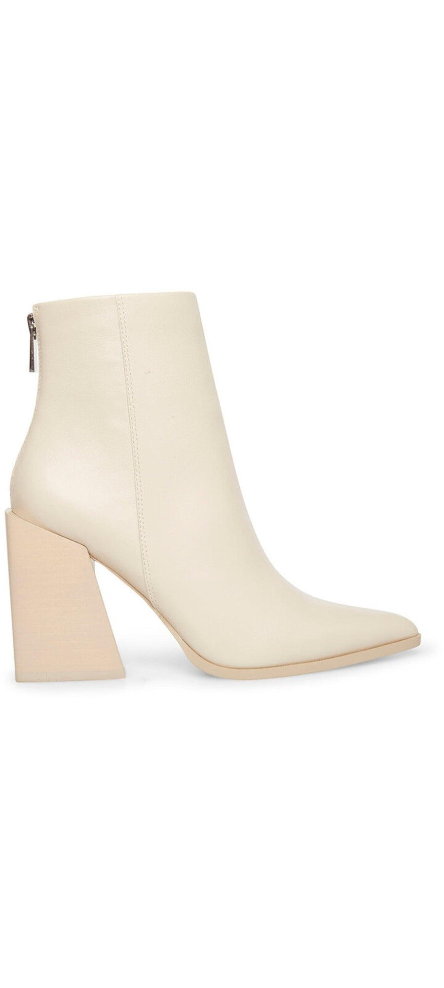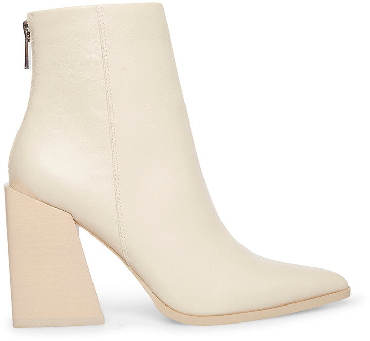 Steve Madden Tish Bone Leather Zipper Closure Pointed Toe Block Heeled Boots