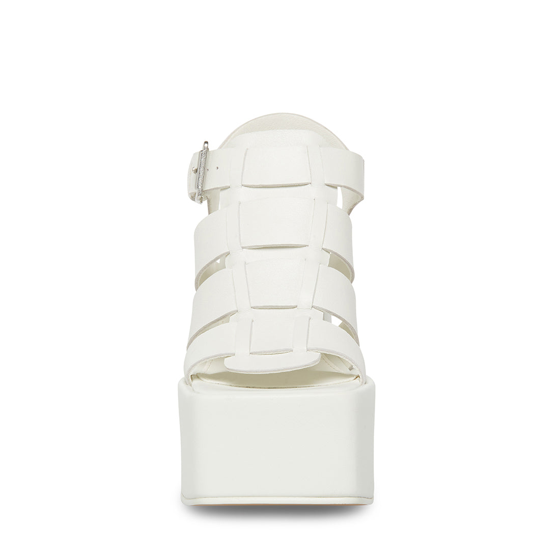 Steve Madden Tranquil White Leather Open Square Toe Buckle Detail Heeled Sandals