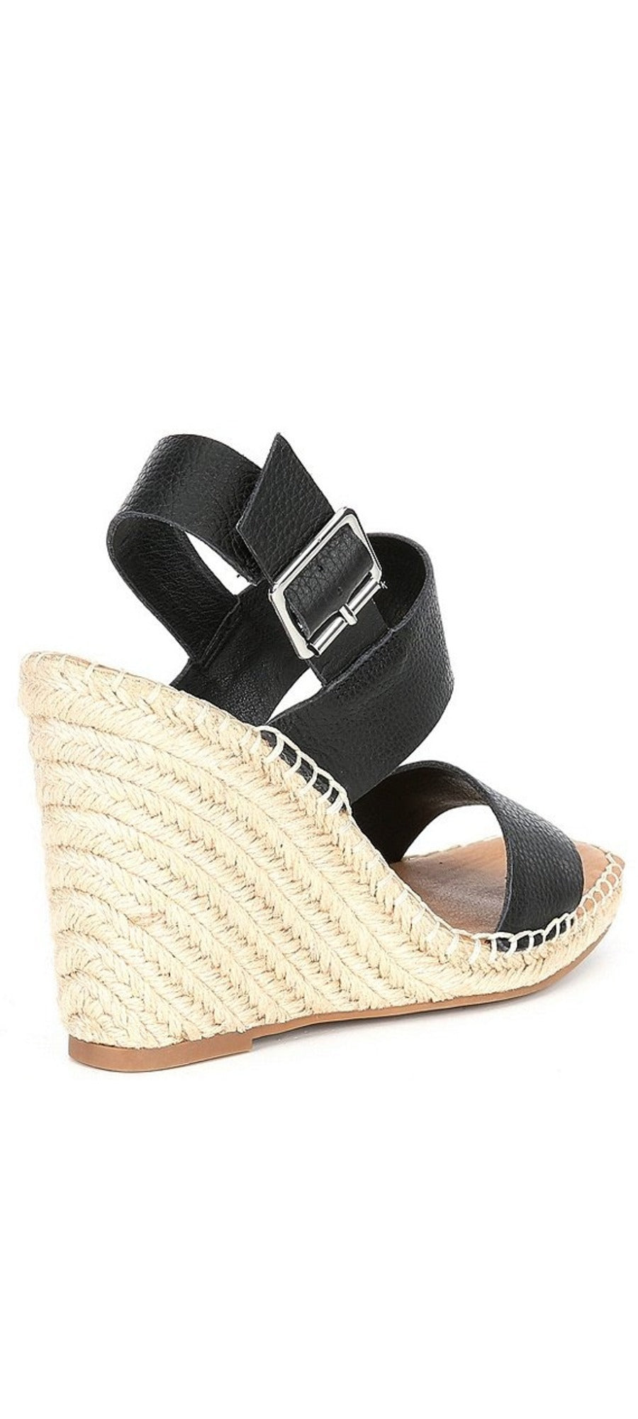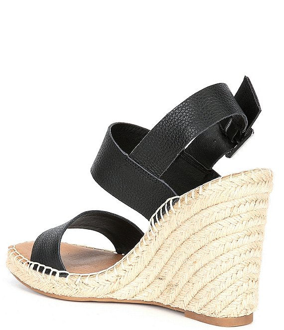 Braided trim adds a subtle, earthy element to a versatile platform wedge sandal complete with a slingback strap.