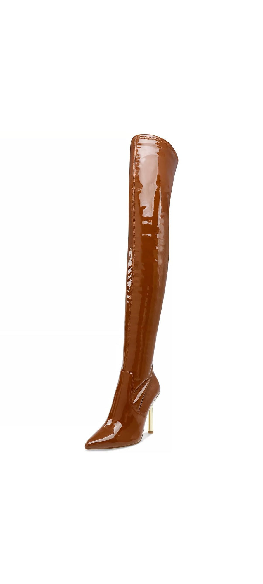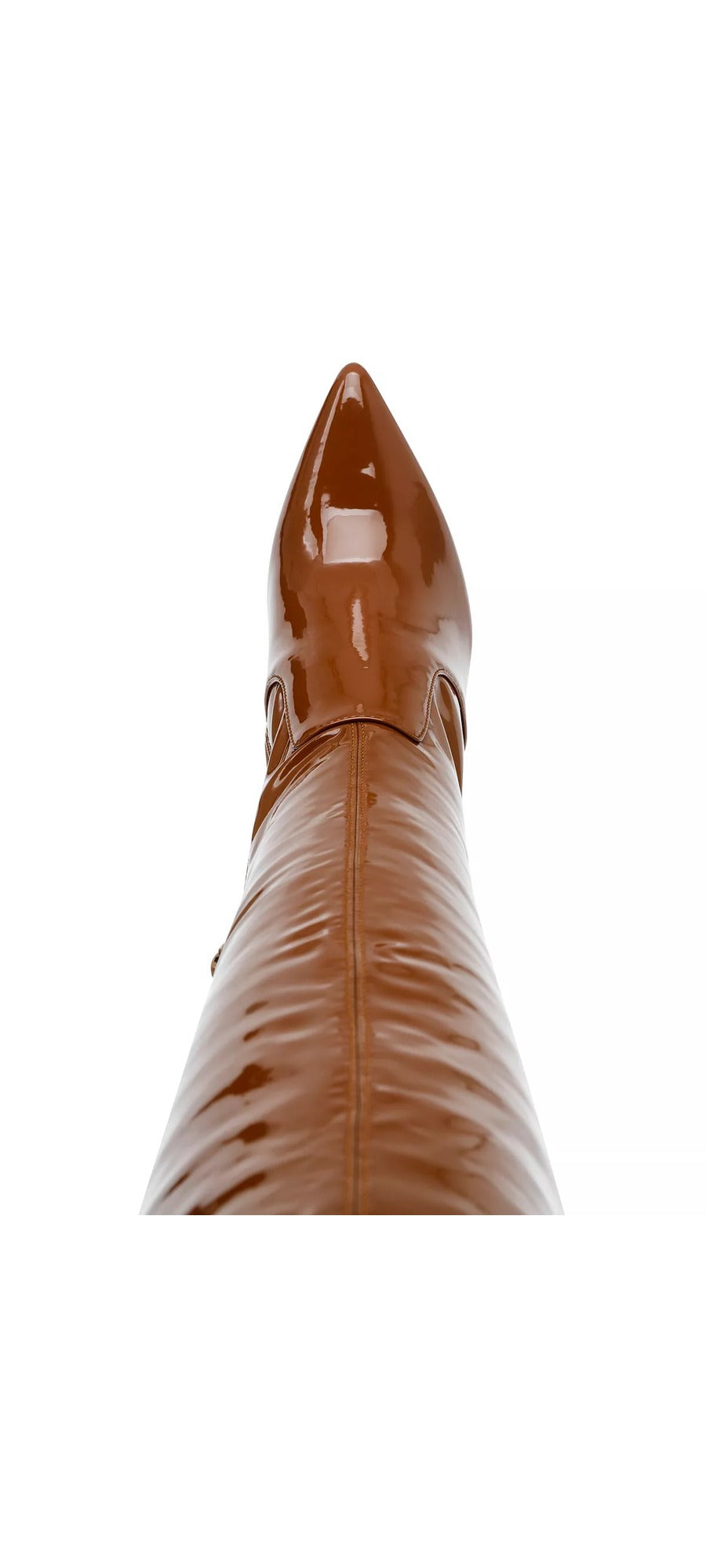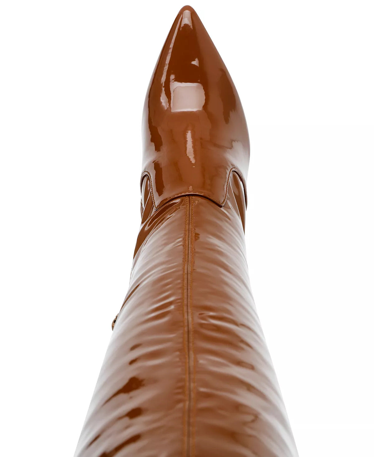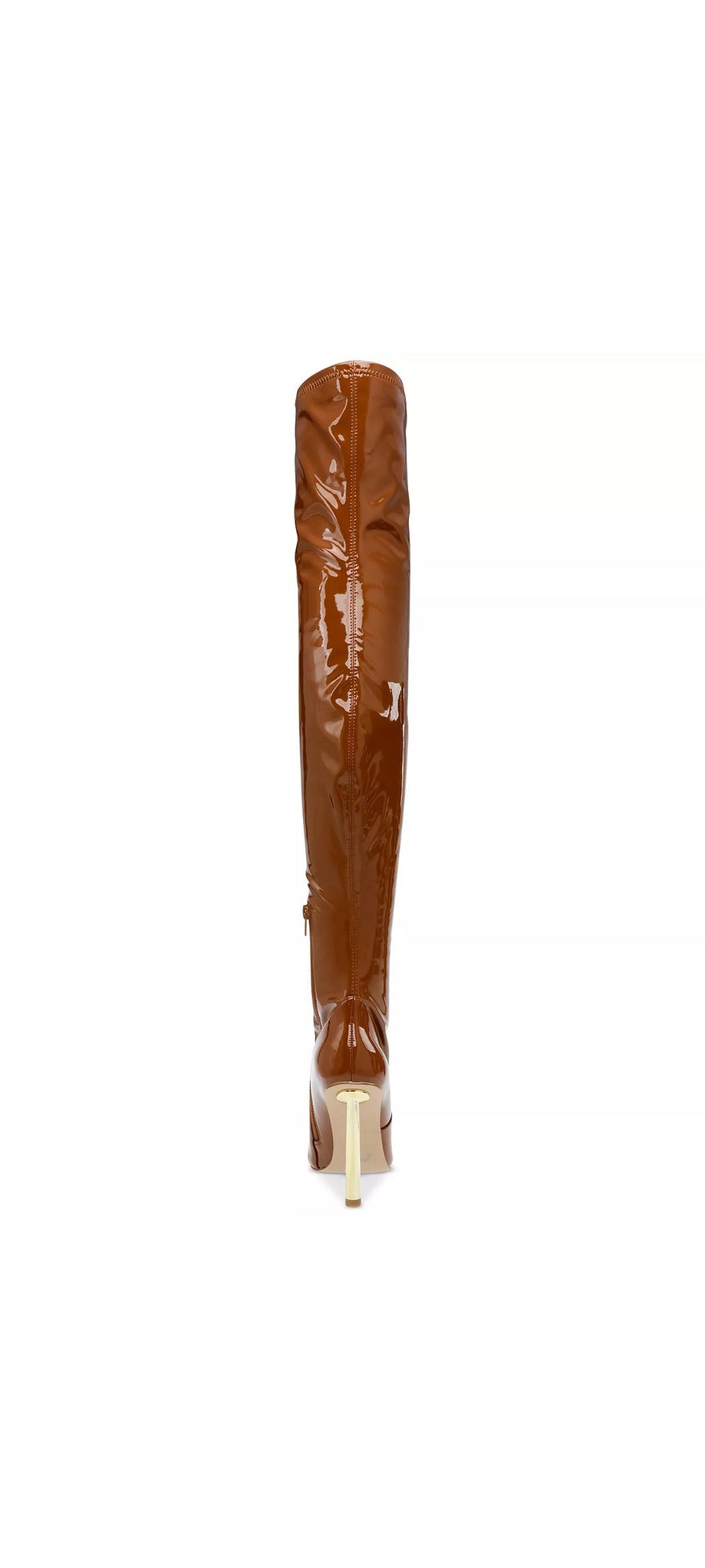 Steve Madden Vivee Cognac Patent Pointed Toe Stiletto Heel Over The Knee Boots