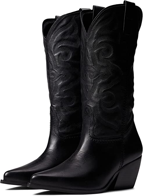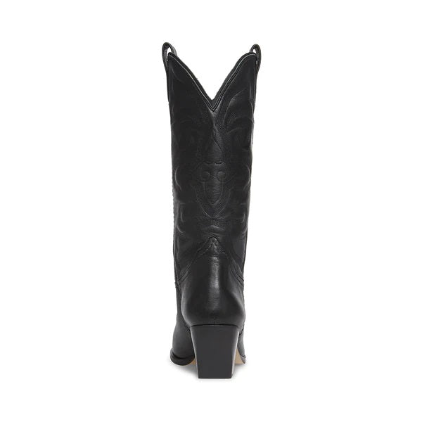 Steve Madden West Black Leather Pull On Pointed Toe Block Heel Western Boots
