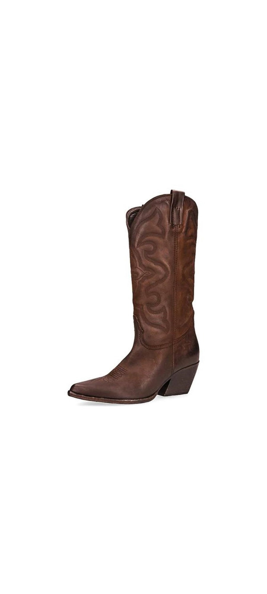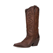 Steve Madden West Brown Leather Midcalf Western Details Block Heel Pull On Boots