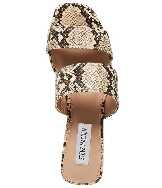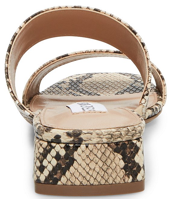 Steve Madden Women's Jaron Low Heel Two-Strap Open Toe Flat Sandal, Tan Snake