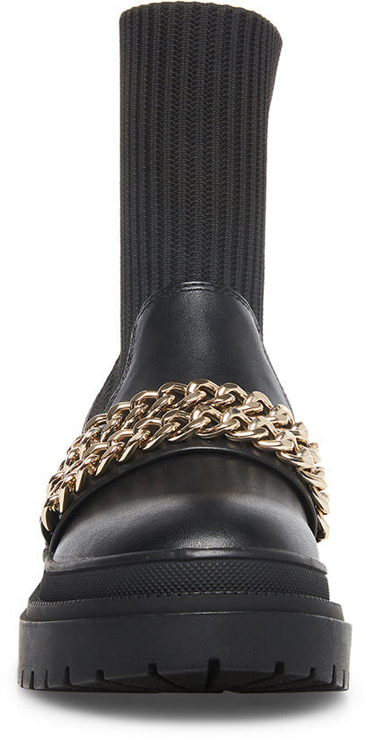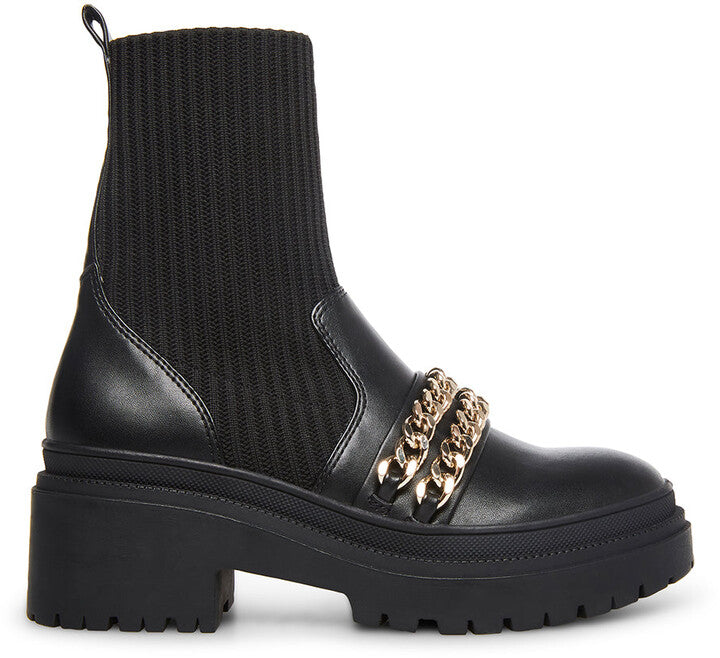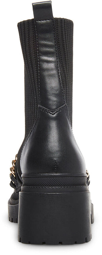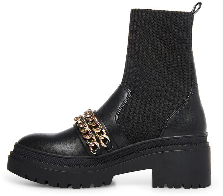 Steve Madden Zyla Black Leather Pull On Chain Detailed Moto Fitted Bootie