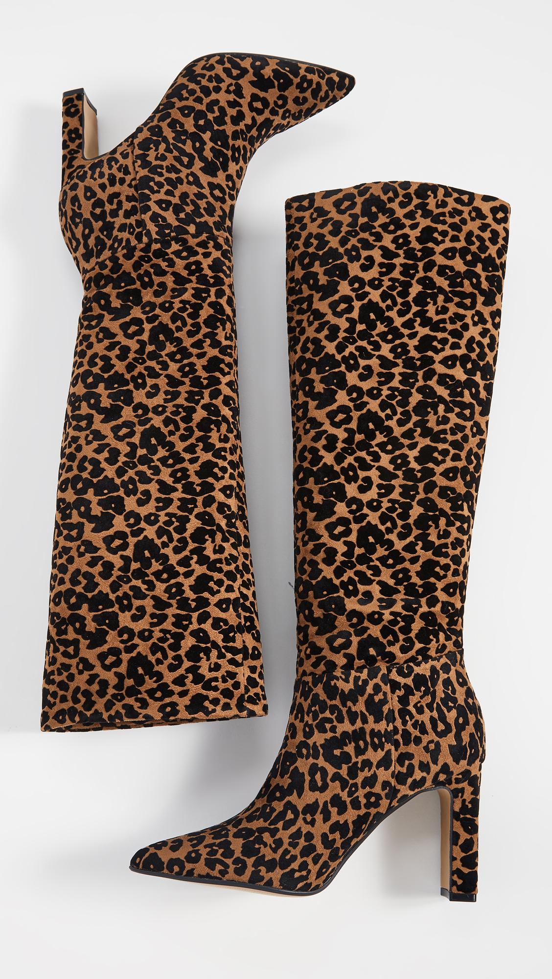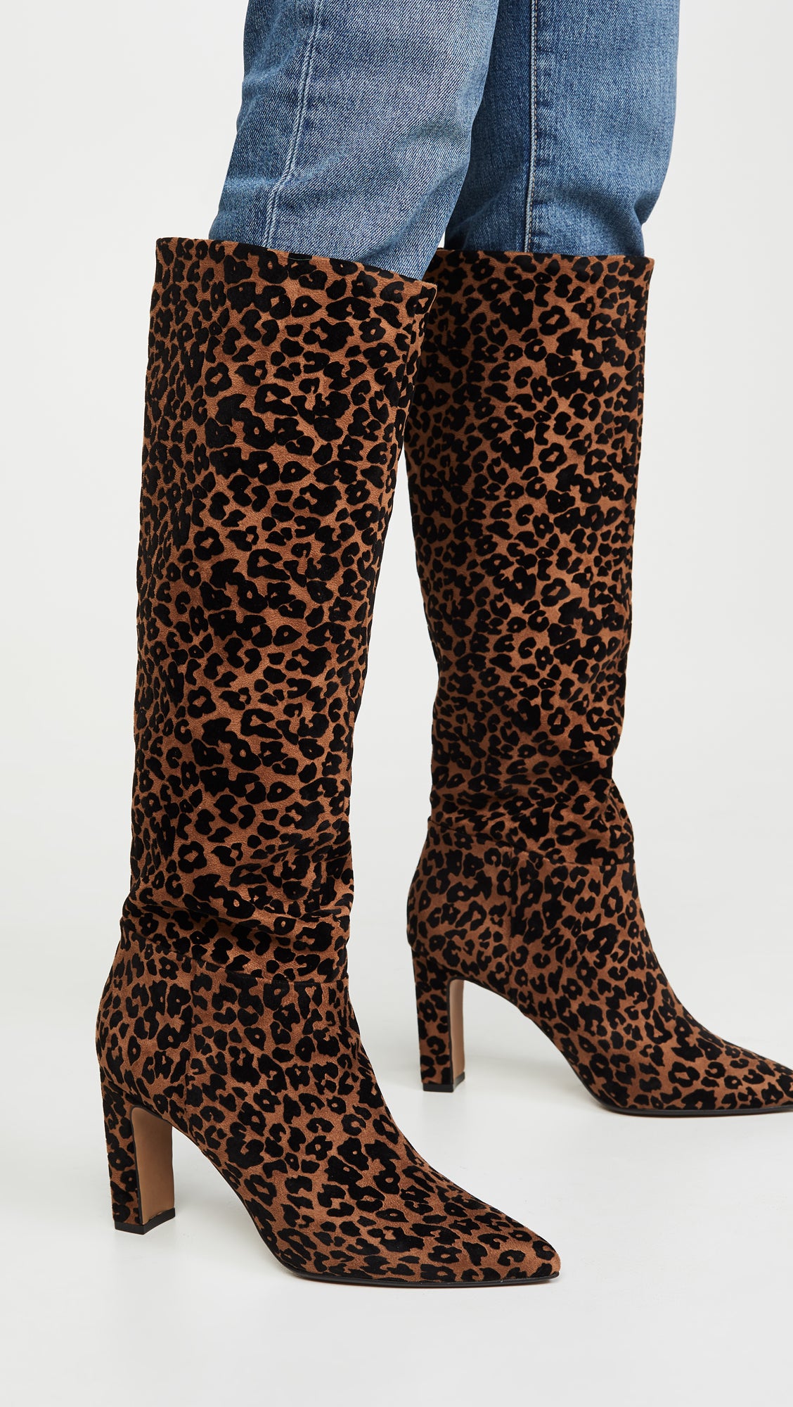 Your style will be roaring with confidence in this Joanis high boot that features an animal-printed synthetic upper and easy pull-on styling.