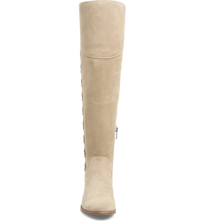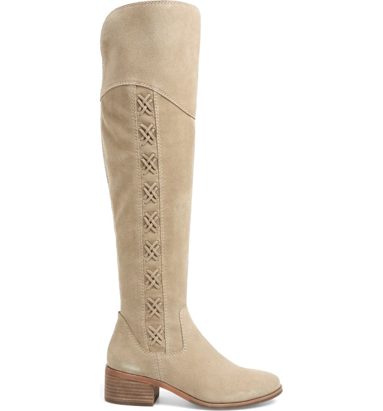Tonal whipstitching adds texture and rustic intrigue to a knee-high boot set on a classic block heel.