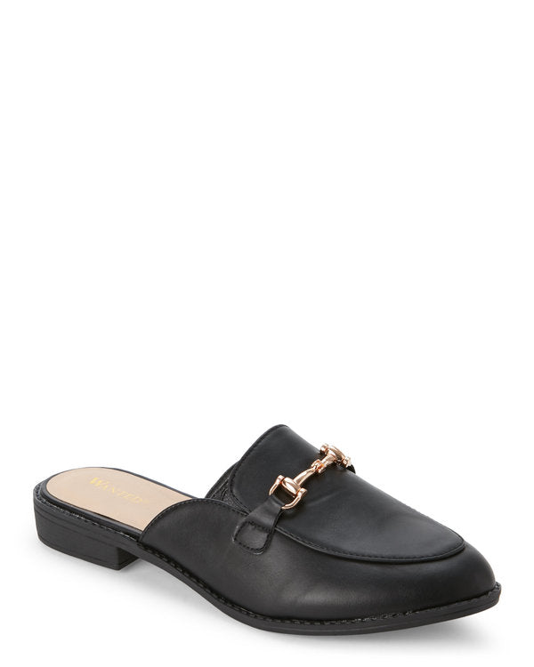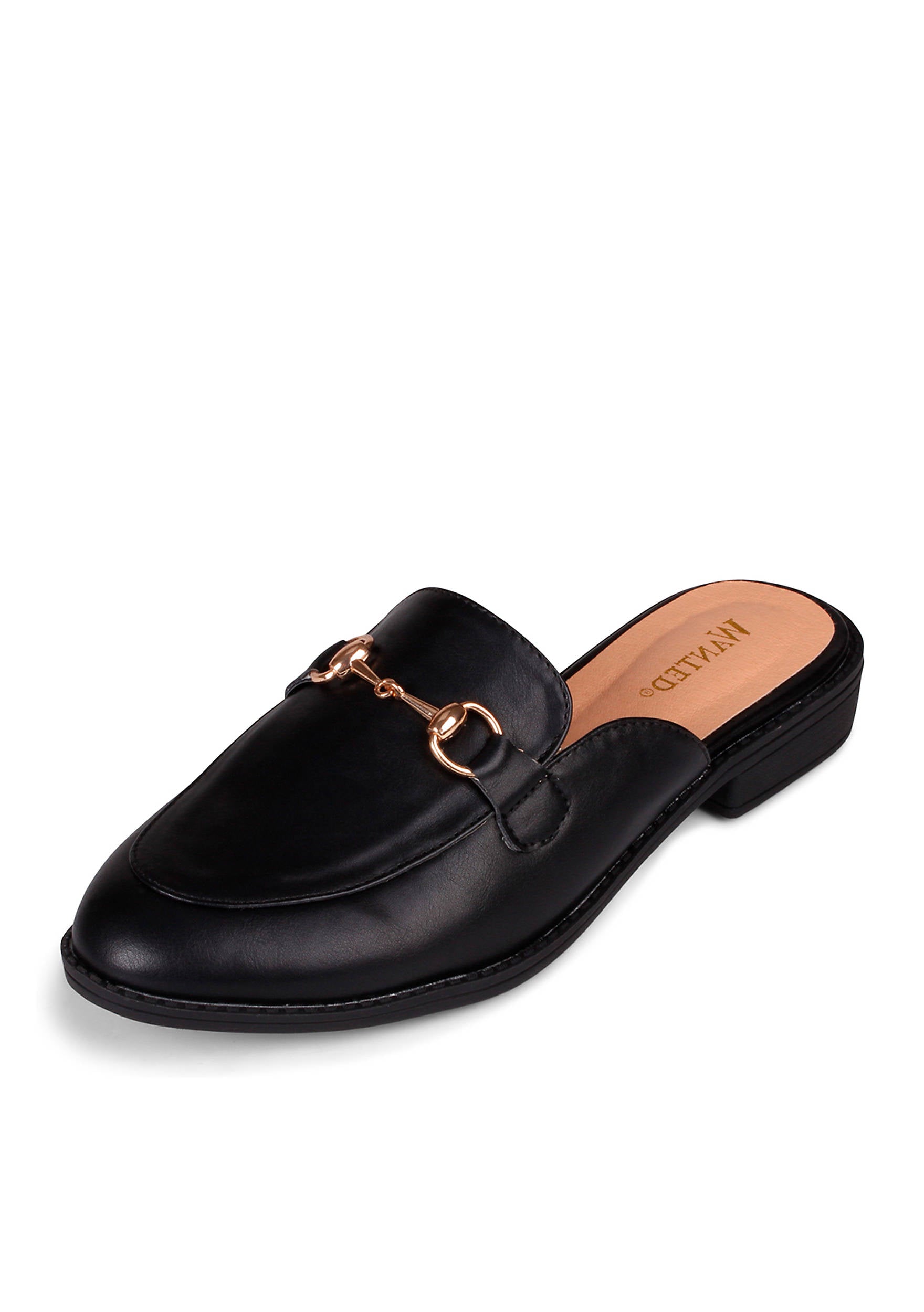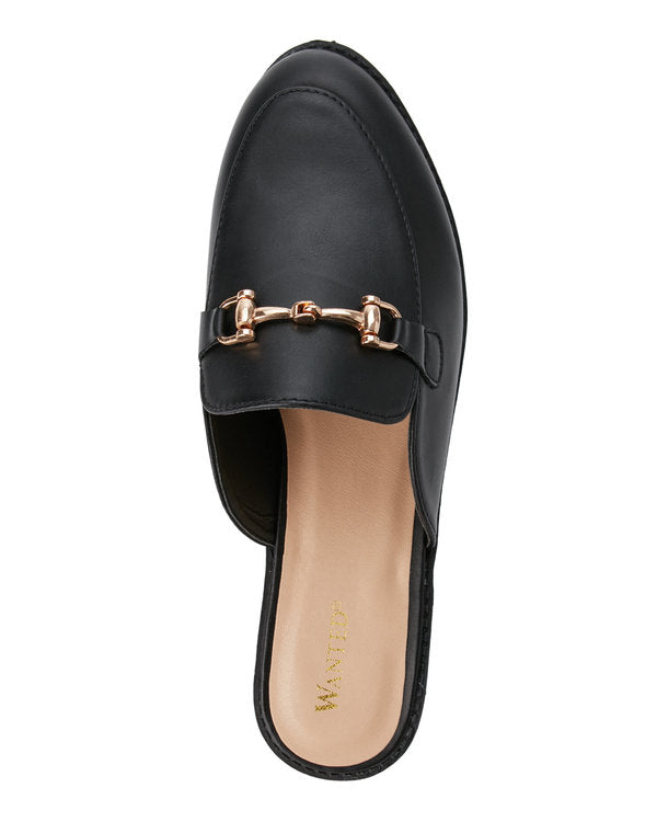 Faux leather upper, round apron toe, gold-tone bit detail