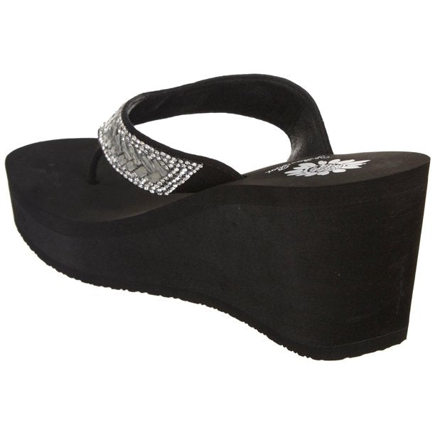 Stunning thong wedge sandal. This style features a slip-on wear with a wedge heel. The comfort insole will provide a comfy ride.