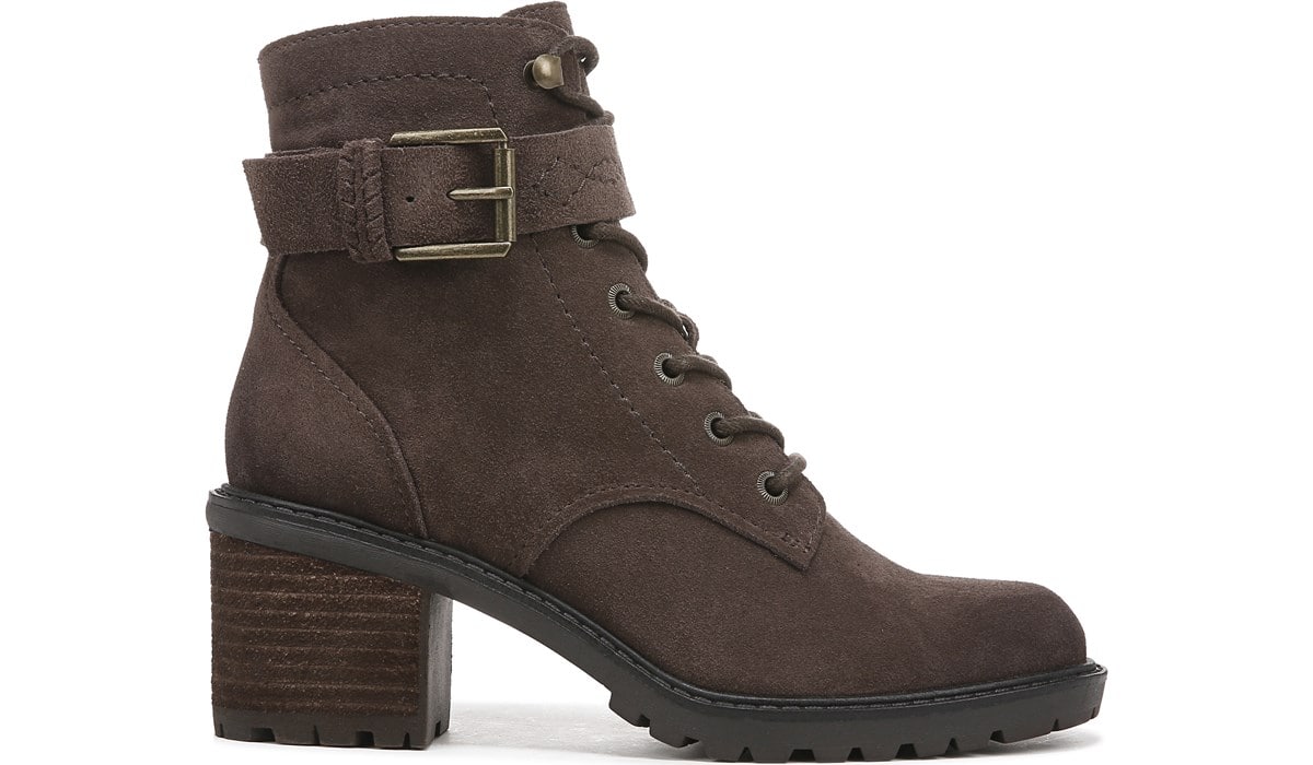 Zodiac Gemma Espresso Lace Up Block Heel Rounded Toe Buckle Combat Ankle Boots