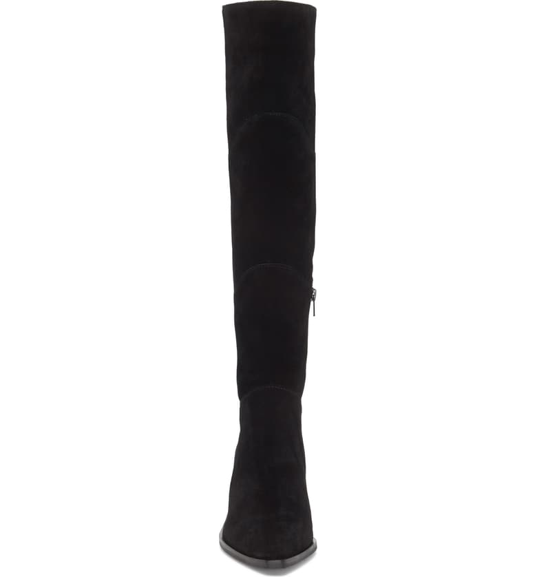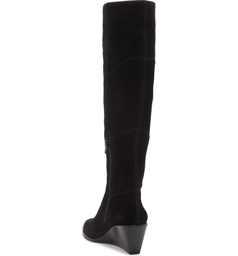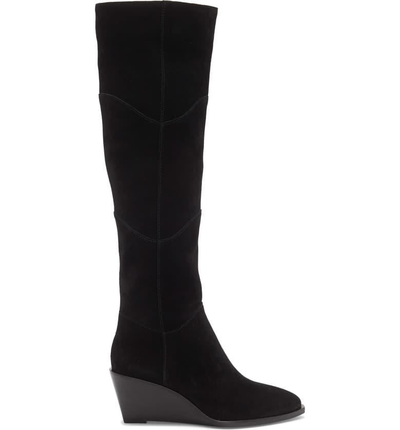 1.State Kern Black Soft Suede Knee High Low Wedge Pointed Toe Dress Boots
