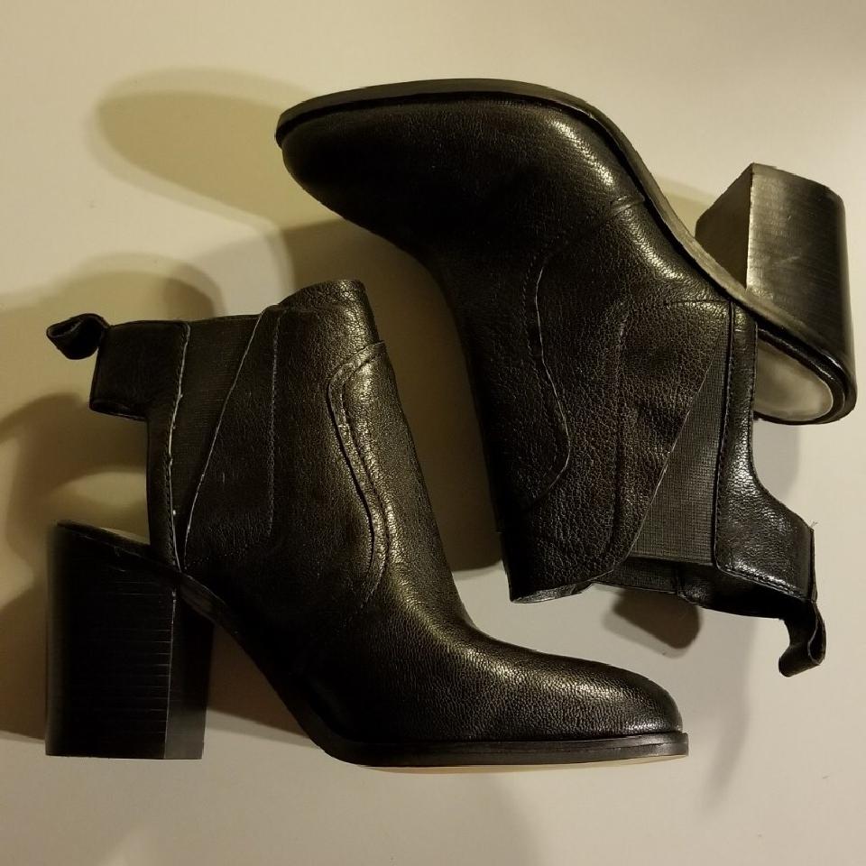 An open counter and perforated leather construction add to the breezy appeal of a chic Western-inspired boot lofted by a chunky stacked heel.