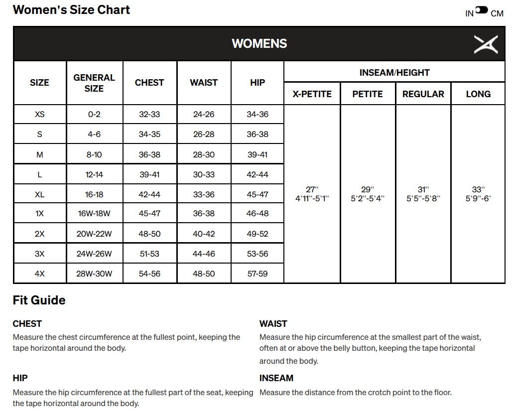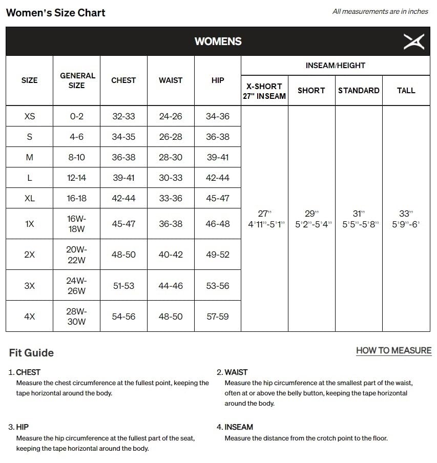 - INSEAM: Short (5'1" 5'4"), Regular (5'5" 5'8"), Tall (5'9" 6'1")