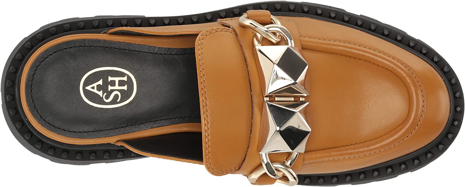 Ash Genius Brown Slip On Gold Chain Platform Lug Sole Mules Slide Loafers