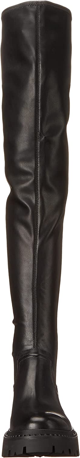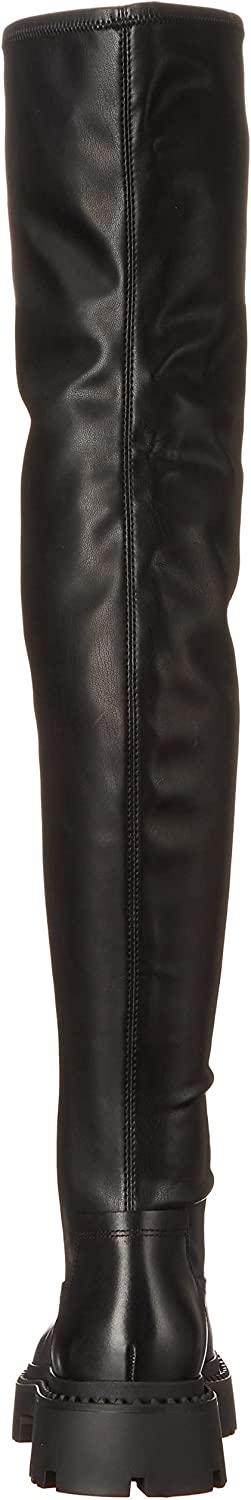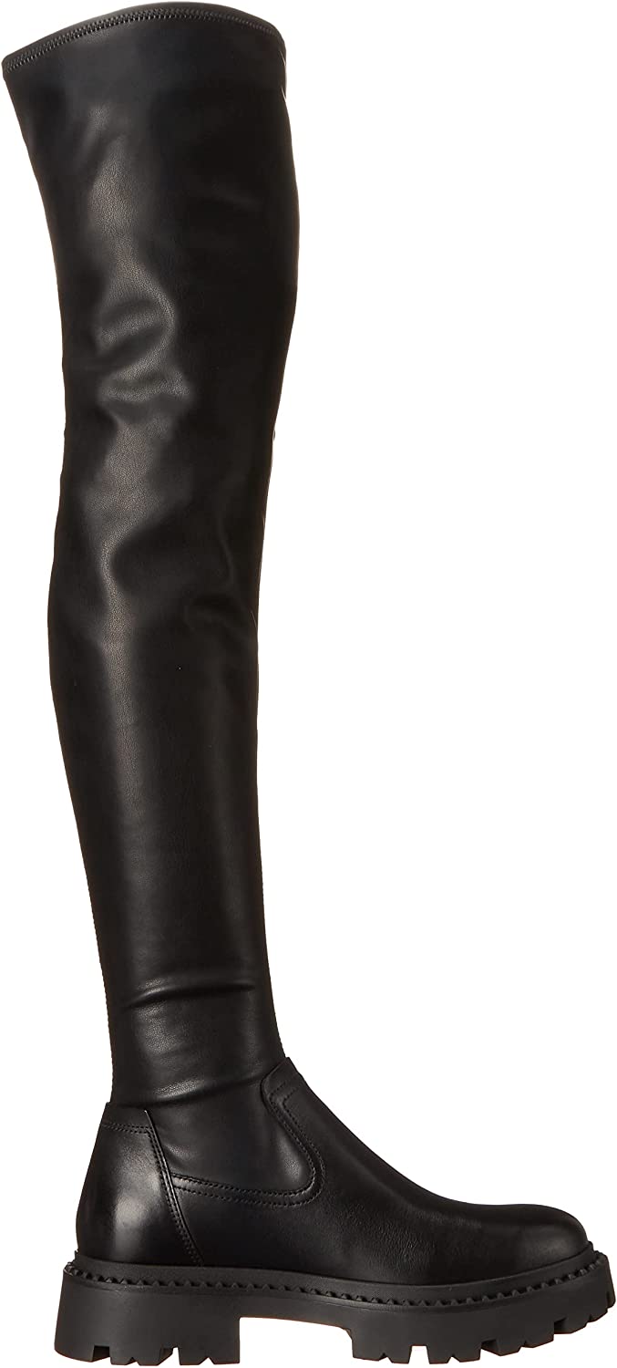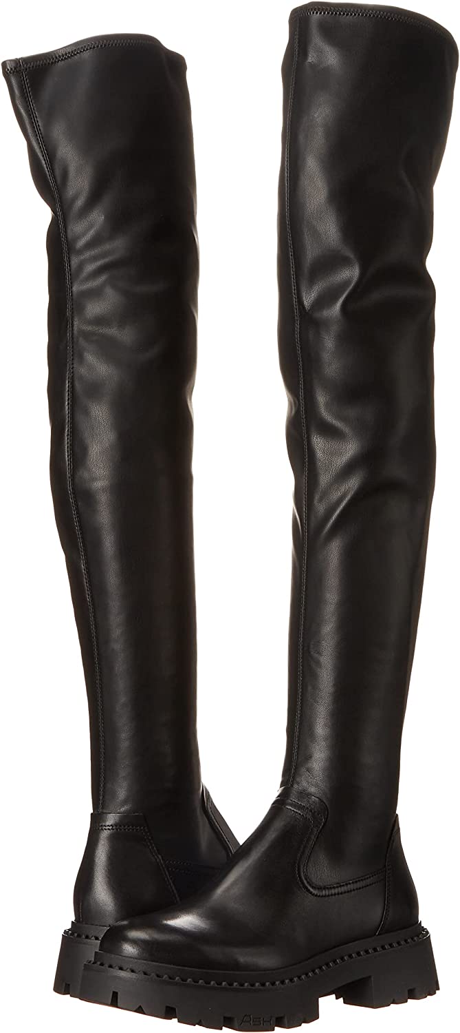 Ash Gill Black Pull On Stretch Fitted Nappa Over The-Knee Lug Sole Boots