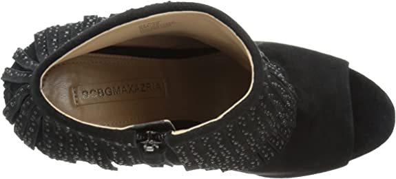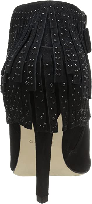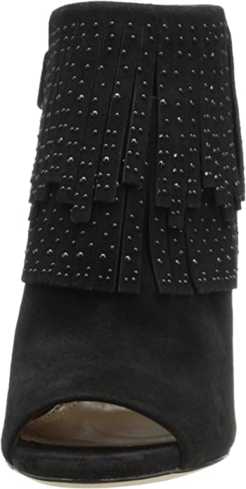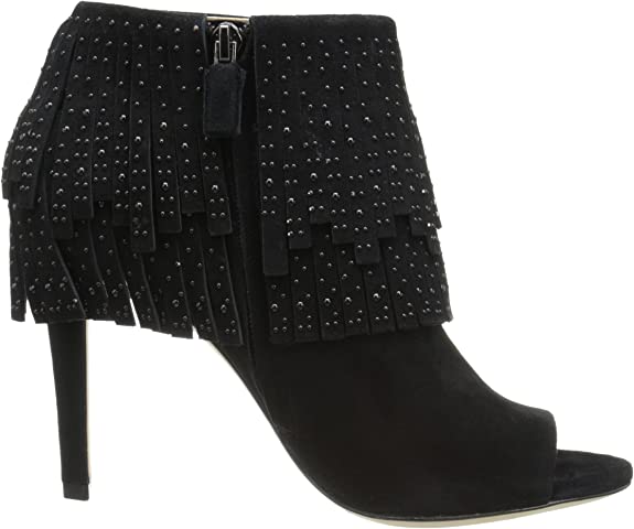 BCBG MAXAZRIA Raimi Bootie Black Suede Peep Toe Fringe High Heel Ankle Boots