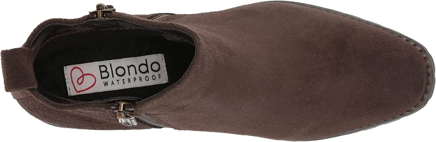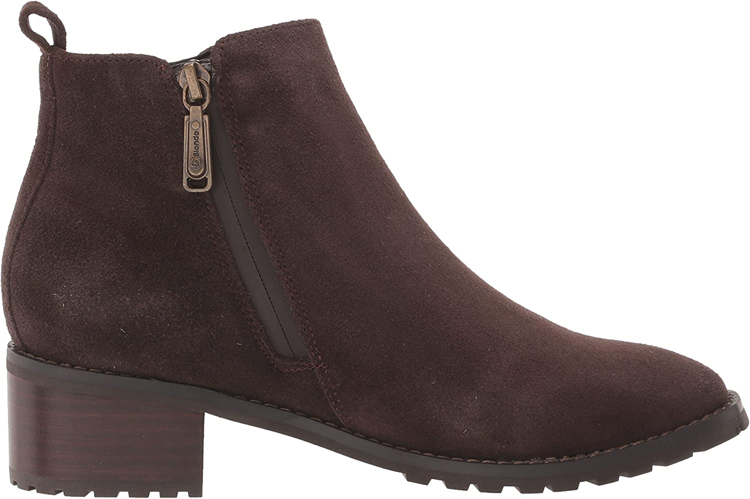 Blondo Samara Brown Suede Almond Toe Pull On Double Zip Block Heeled Ankle Boots