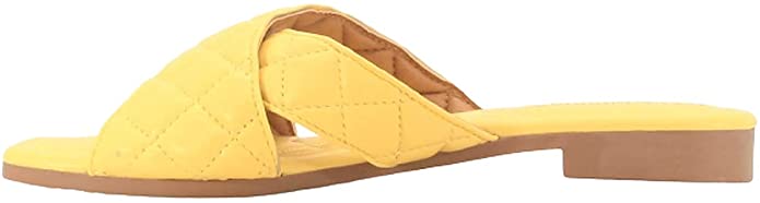 Cape Robbin ALANIS Quilted Slip-On Comfort Mules Open Toe Slide Sandals Yellow