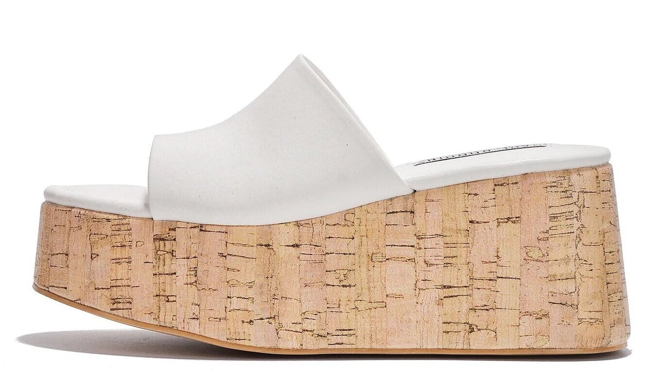 Cape Robbin Banka White Slip On Round Open Toe Chunky Wedge Heel Fashion Sandals