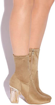 Cape Robbin Fay-1 No Frontin Glass Block Heeled Pointed Toe Stretch Ankle Boots