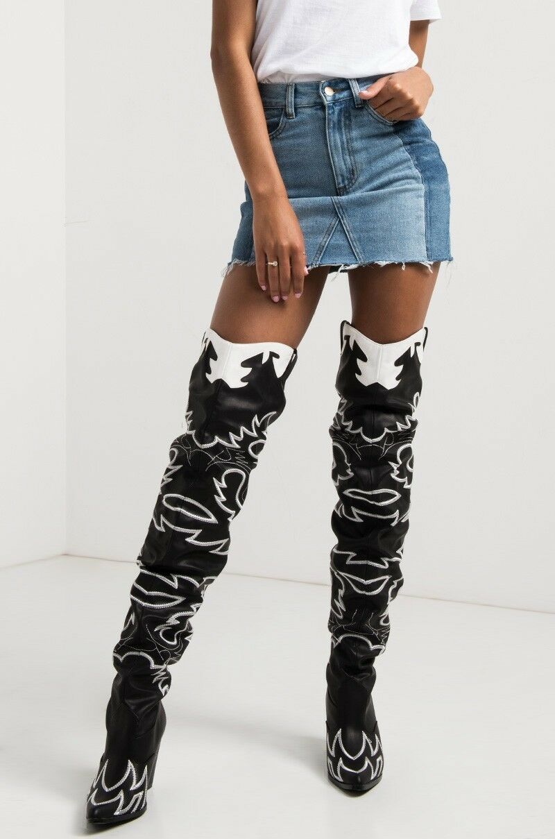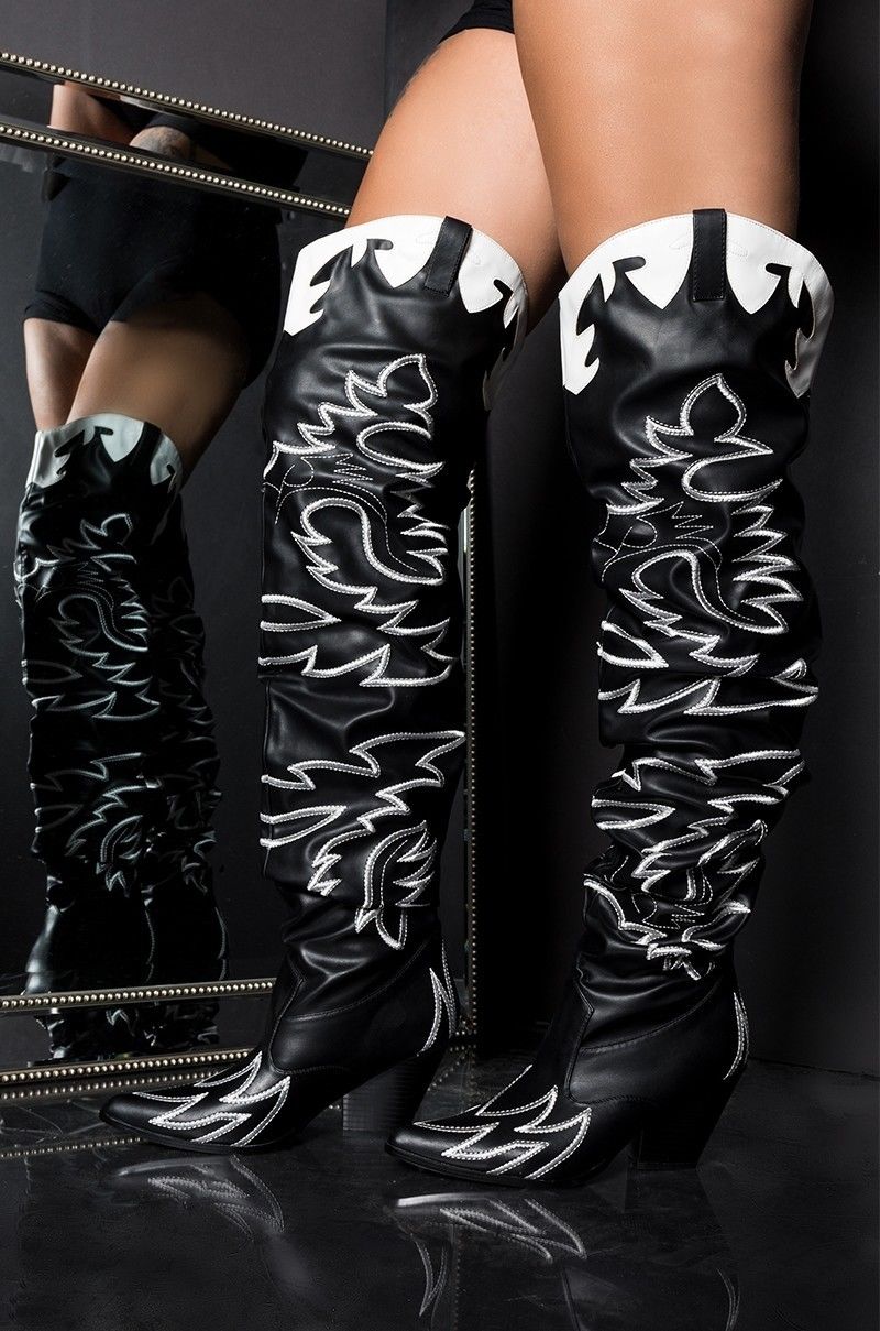 Cape Robbin Kelsey-21 Black Western Pointed Slouchy Over The Knee Thigh Boots