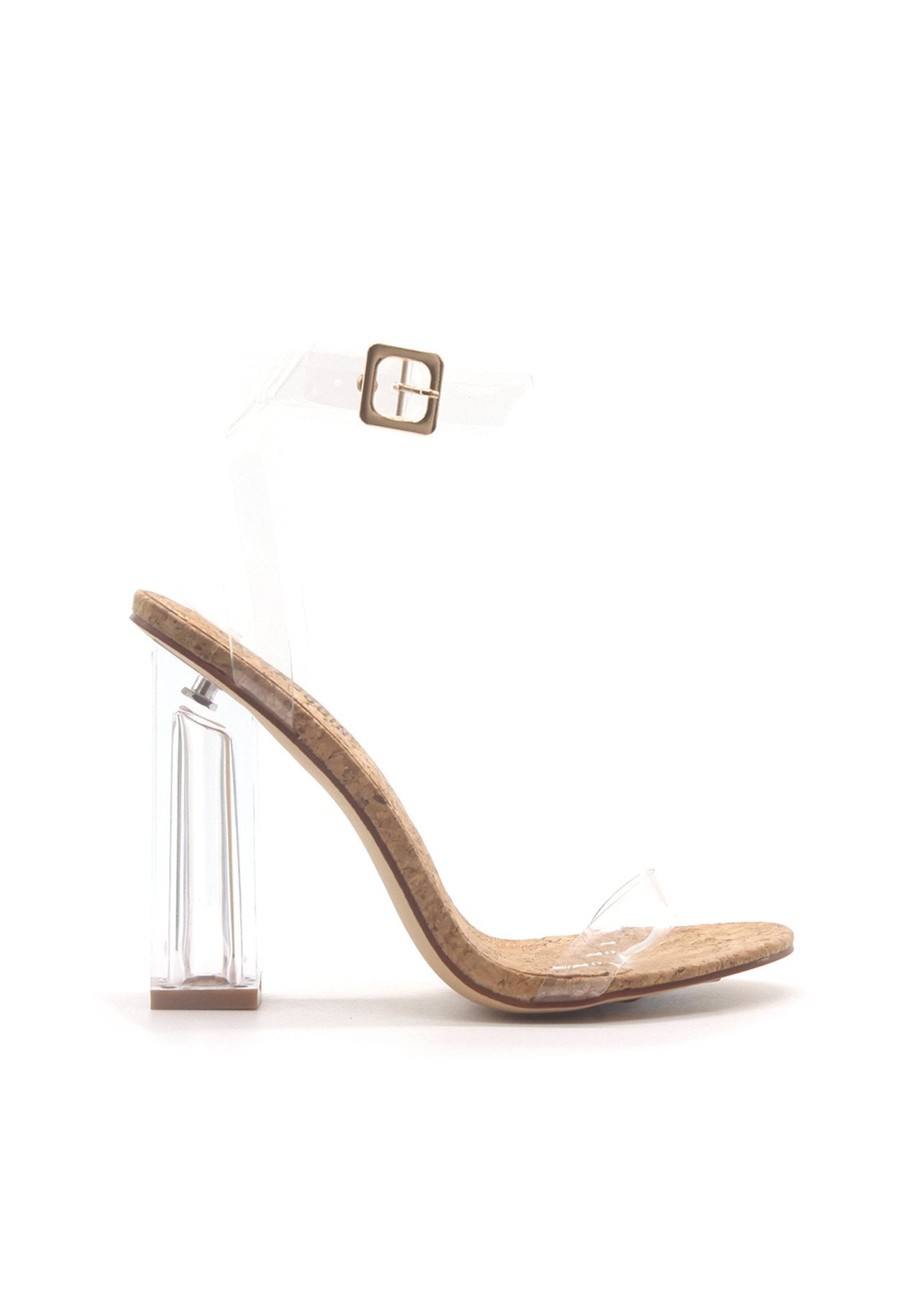 Cape Robbin Maria-2 CORK Clear Chunky Block High HeelsTransparent Open Toe Heels (6.5)