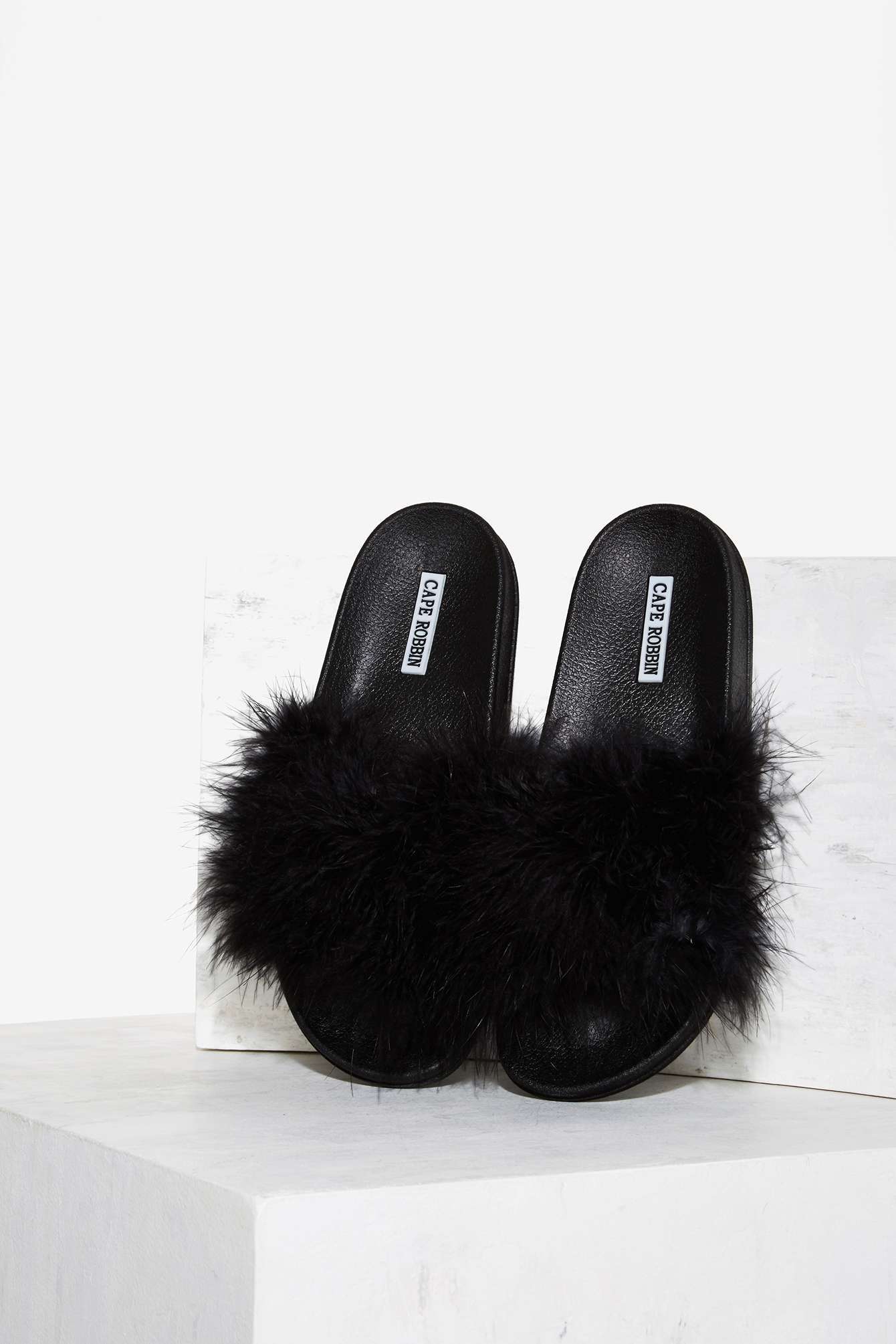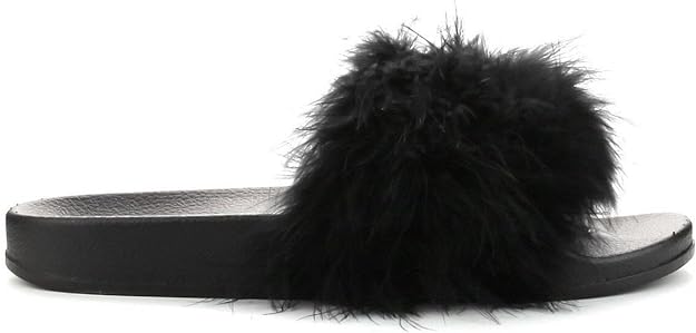 Cape Robbin Moira-2 Women Flip Flop Marabou Fur Slide Slip On Flats Sandals Shoe Slipper Black
