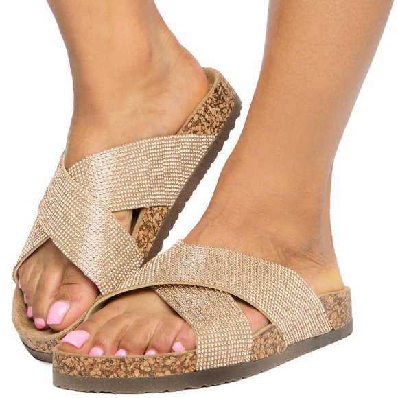 Cape Robbin Paula-3 Rose Gold Footbed Comfort Slip On Flats Flip Flop Sandals