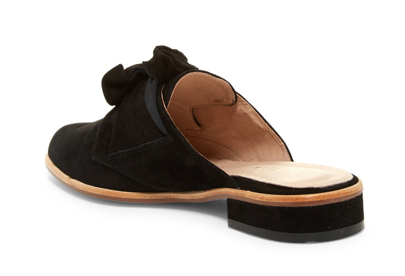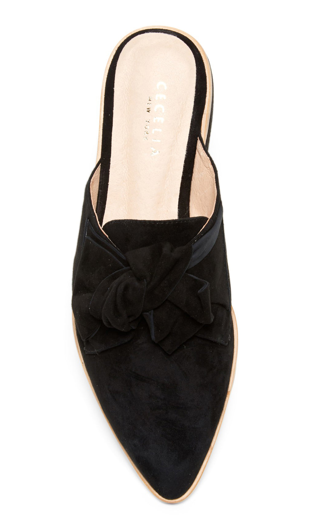 Cecelia New York Amara Black Suede Pointed Toe Open Back Slides Flats Mules