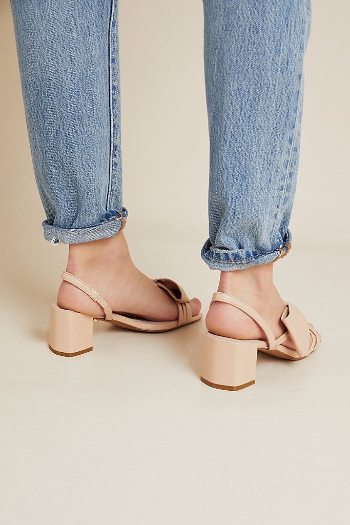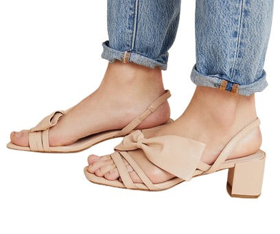 Cecelia New York Cosette Slingback Heels NUDE Block Heel Open Toe Retro Pumps