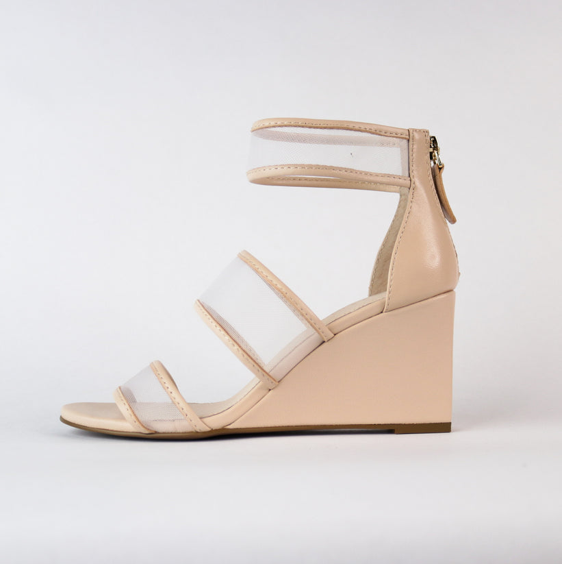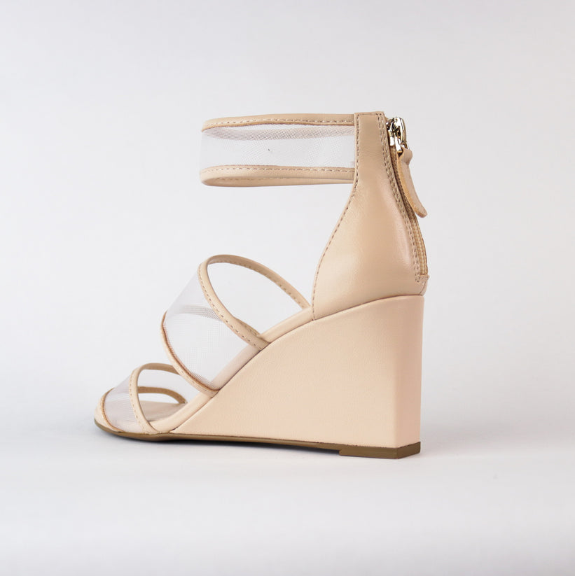 - Sleek and sophisticated wedge sandals featuring a convenient back zipper for easy wear