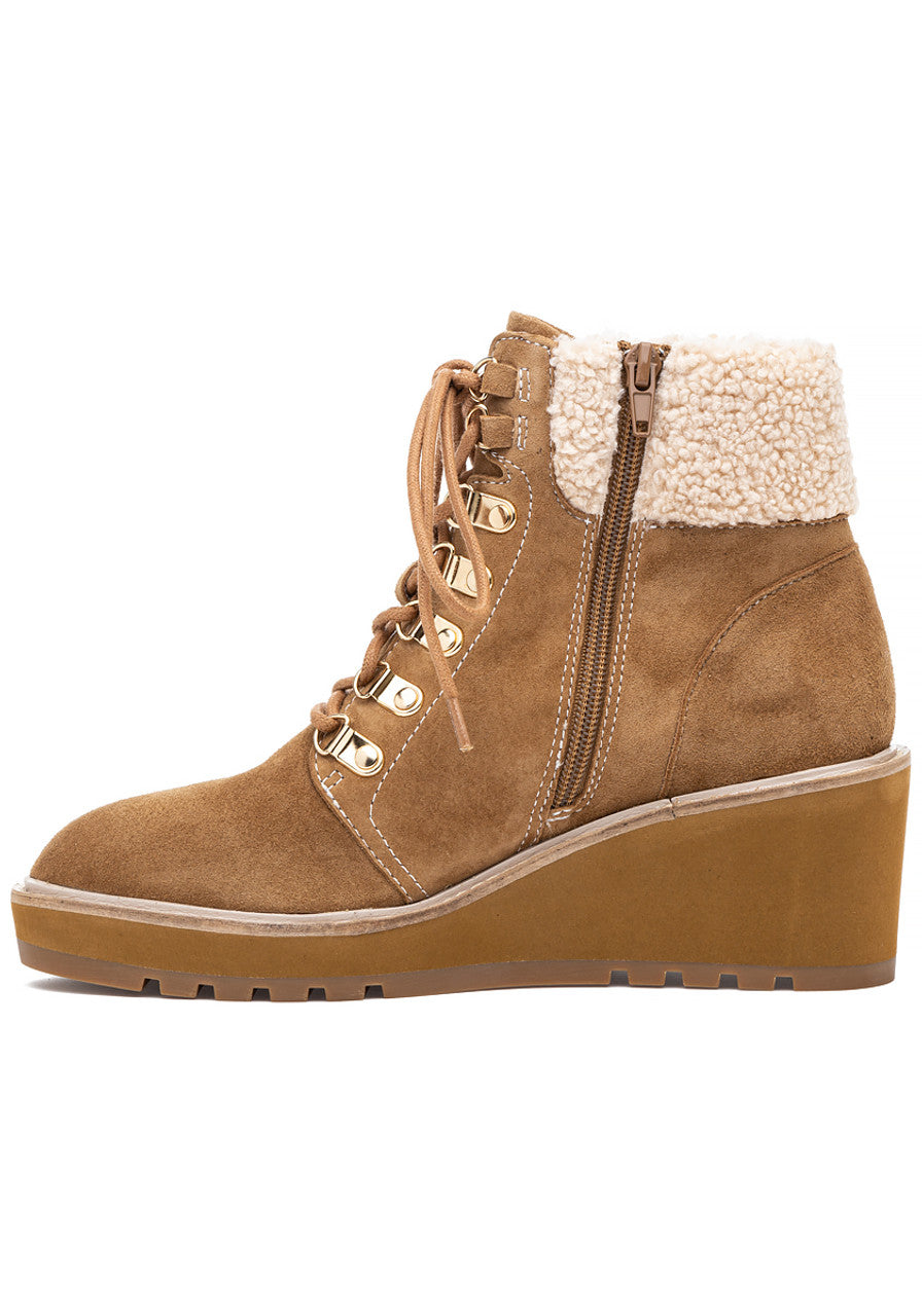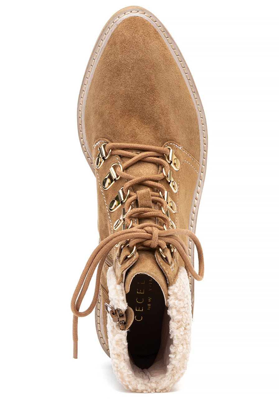 Cecelia New York Geraldine Sand Suede Lace Up Sheep Fur Ankle Welt Detail Boots