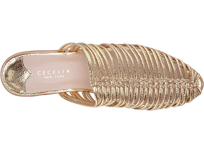 Cecelia New York Gloria Slide Sandal Golden Metallic Slip On Flats Caged Mules