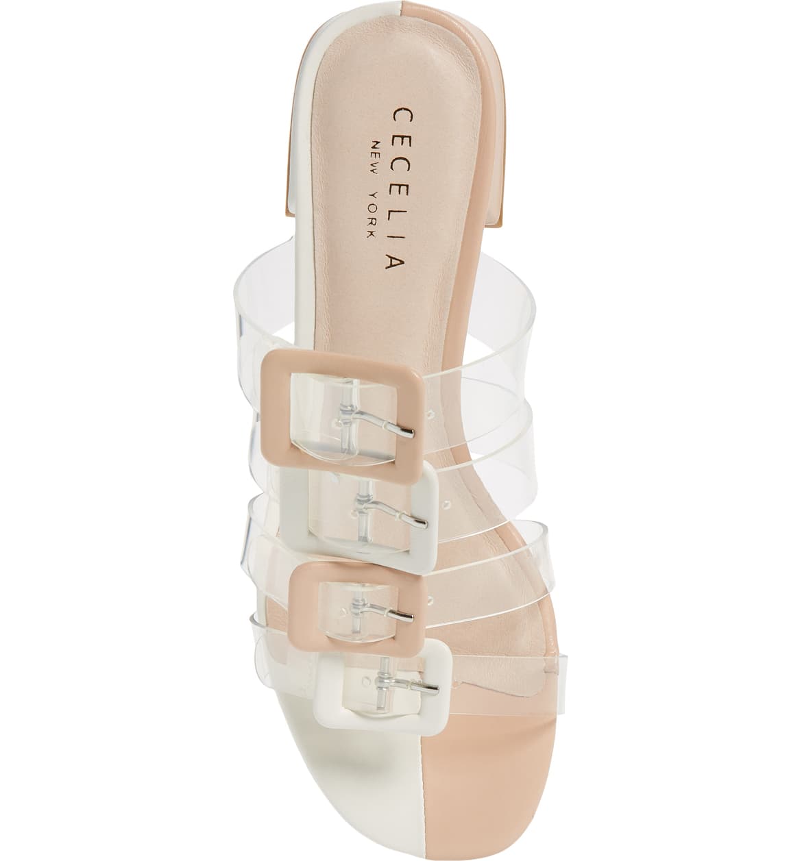 Cecelia New York Lincoln Slide Sandal Nude Alabaster Clear Transparent Mules