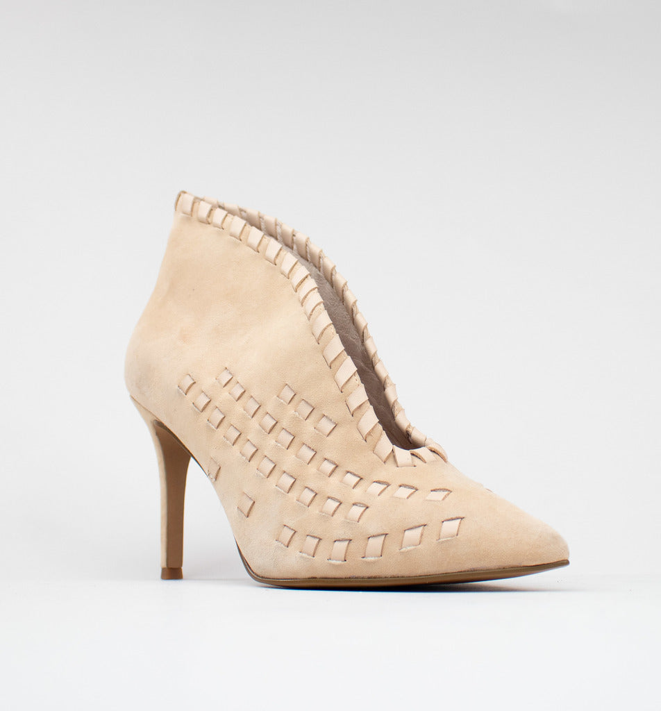Cecelia New York Merrick Nude Pointed Toe Mid Heel Cut Out Ankle Bootie Pumps
