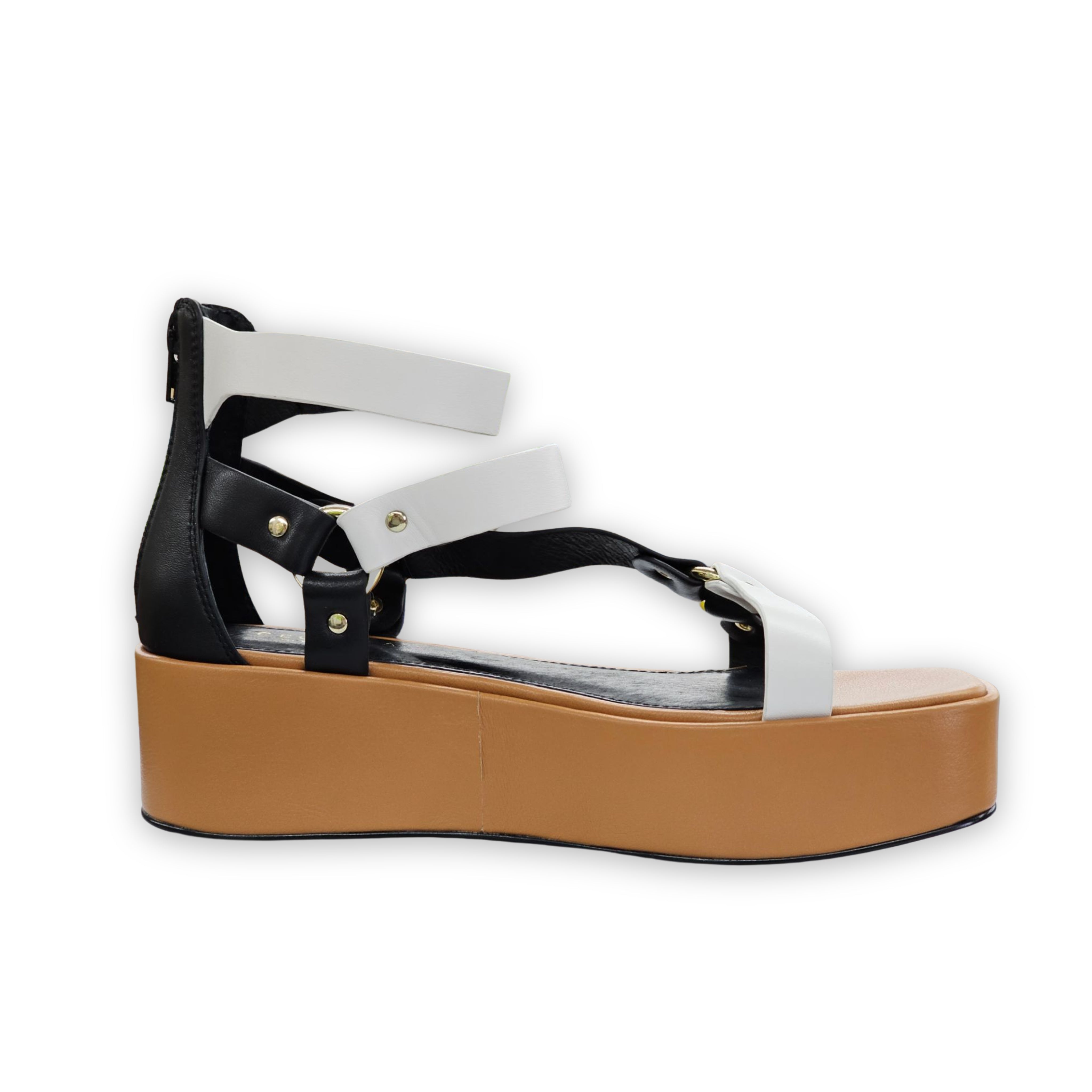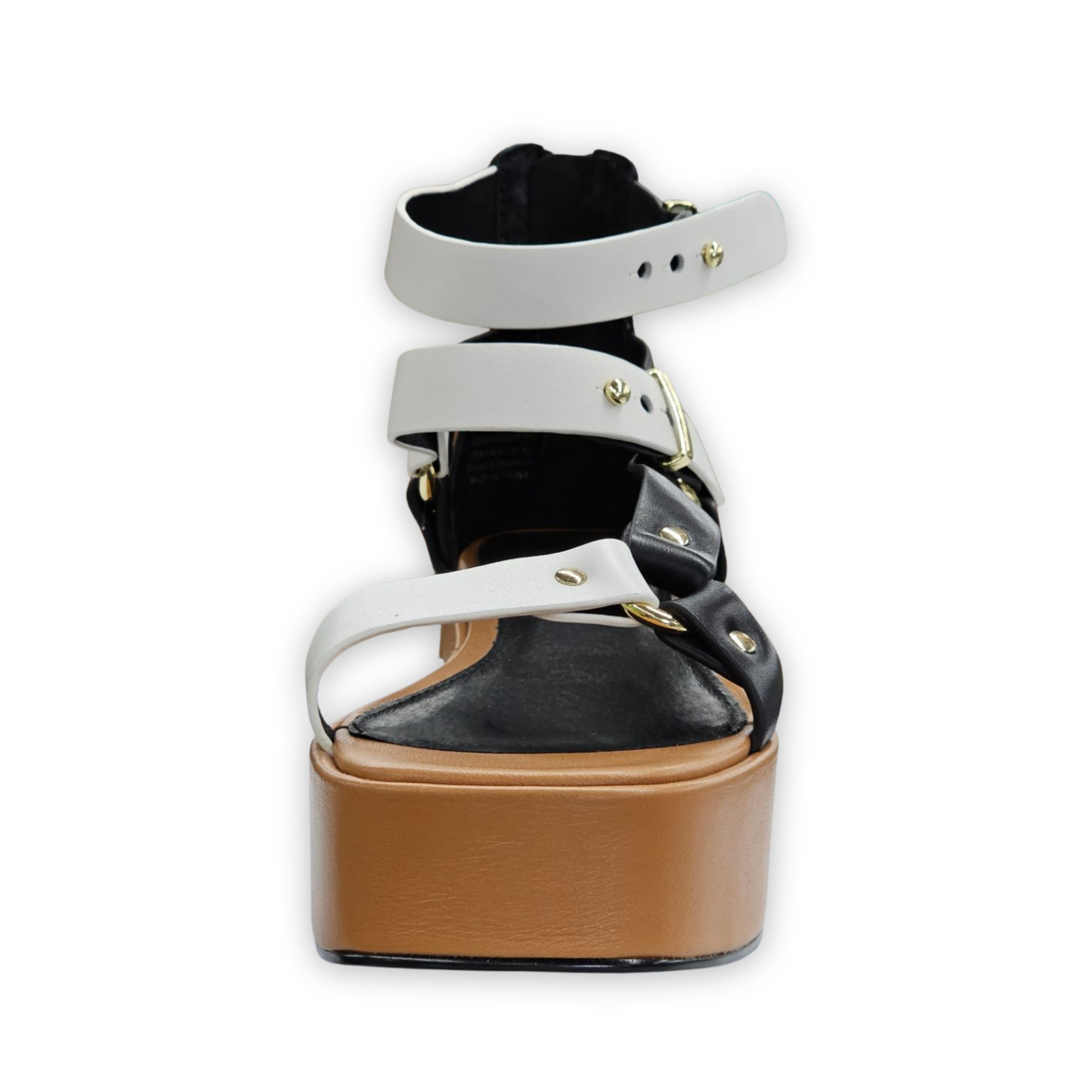 Cecelia New York Mighty Black White Buckle Ankle Strap Open Toe Platform Sandals