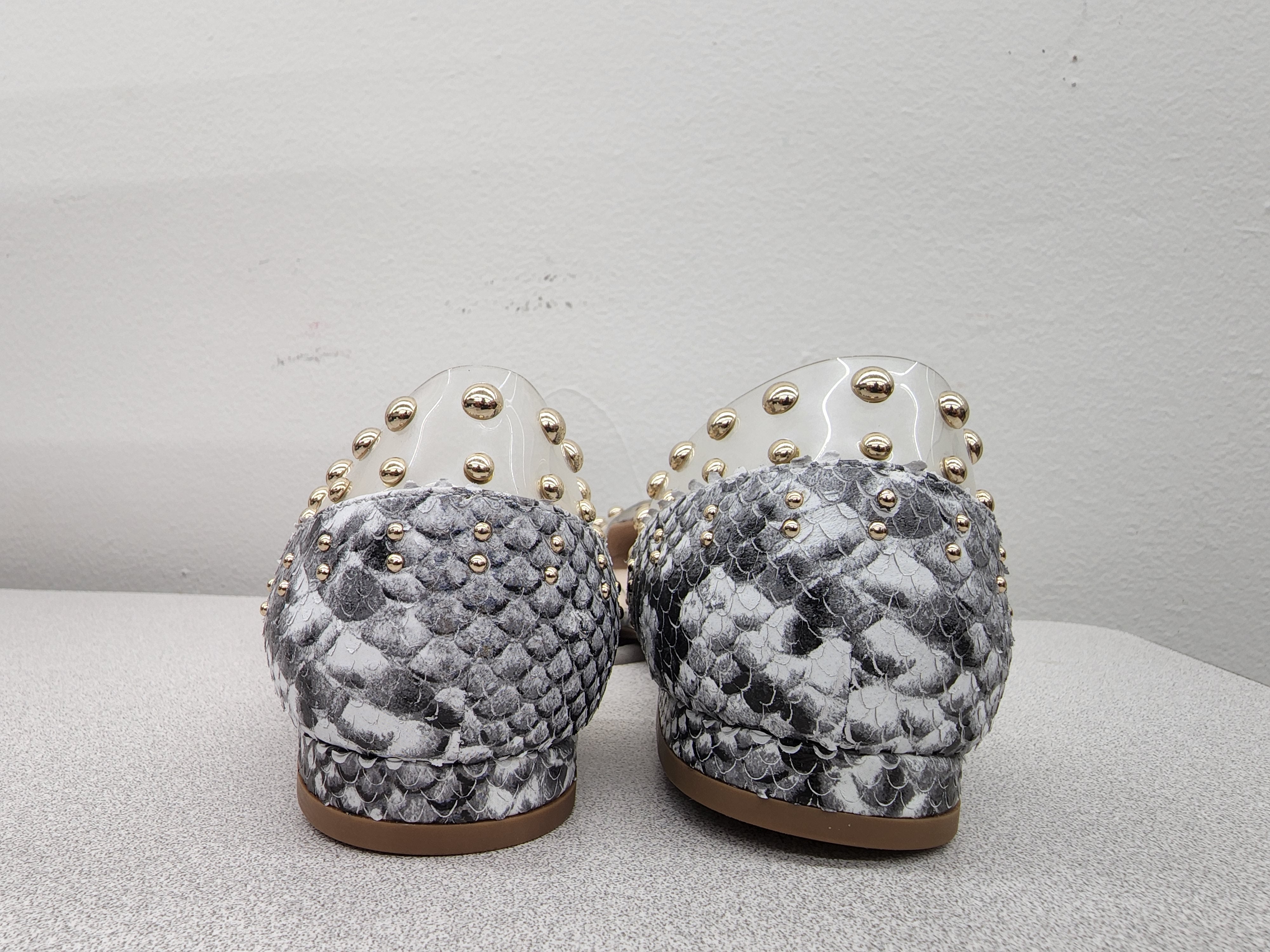 Cecelia New York Min Black White Snake Clear Pointed Transparent Ballet Flats