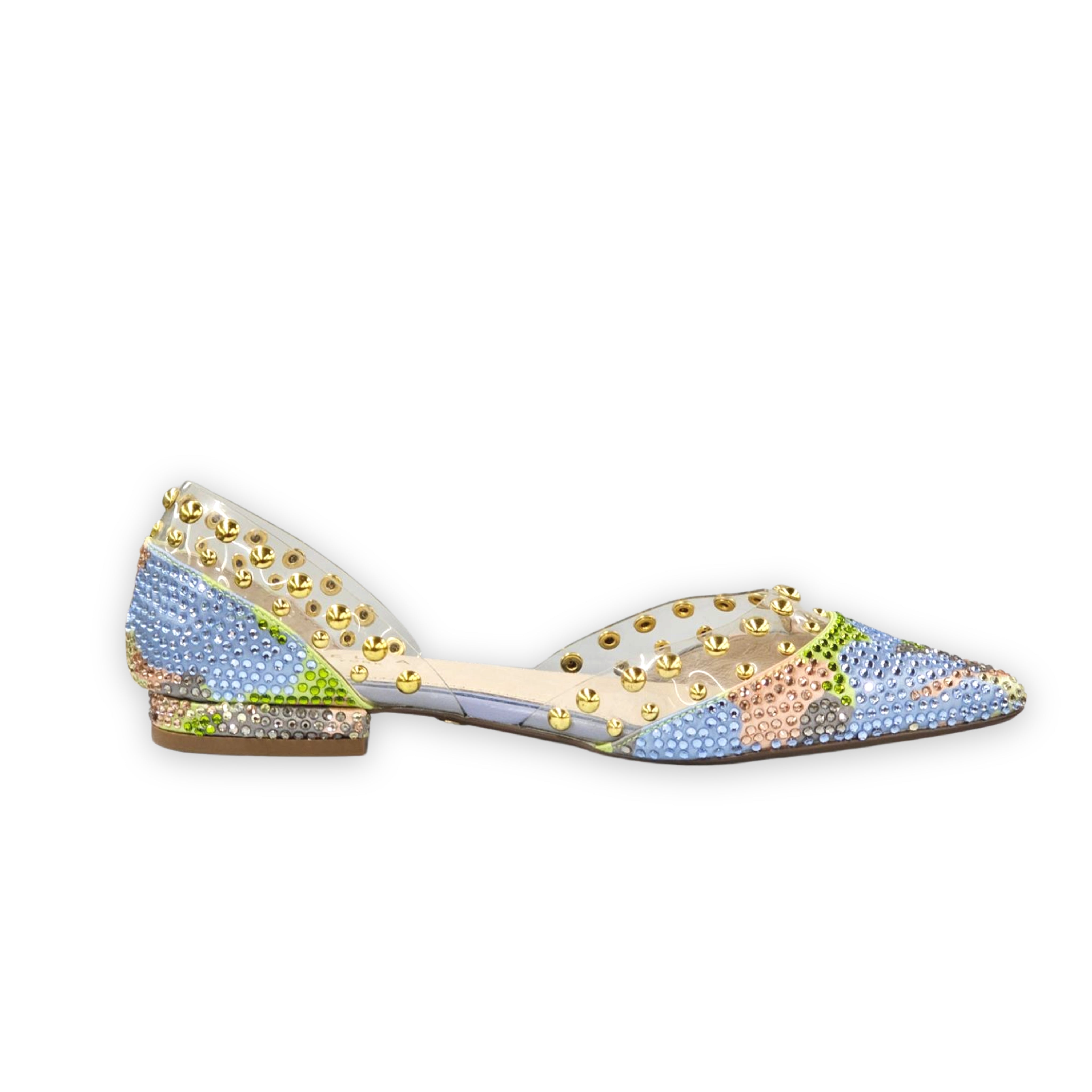 Cecelia New York Min Camo Rhinestone Ballet Flats Clear Pointy Embellished Shoes