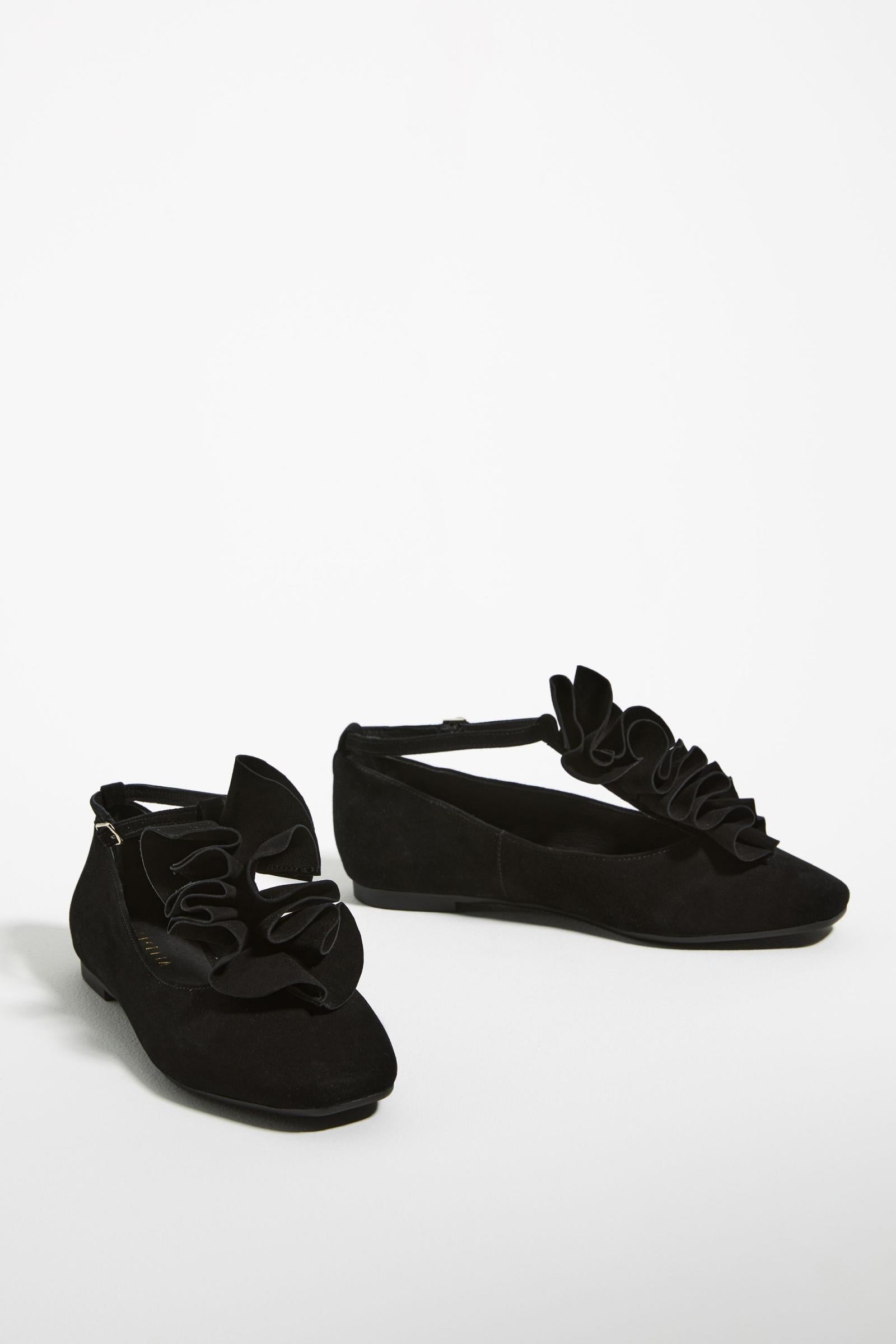 Cecelia New York Remi Black Suede Elegant Ankle Strap Flat Ballet Flat Shoes