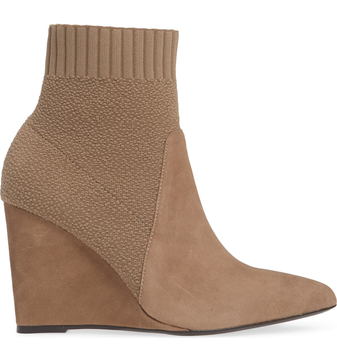 Cecelia New York Renata Pointy Toe Sock Bootie Mustang Taupe Fitted Wedge Boots