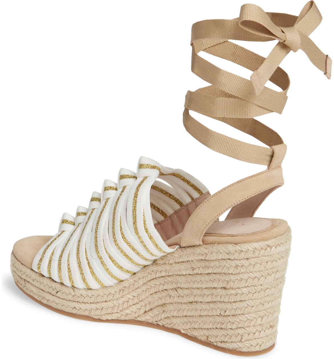 Cecelia New York Serena Espadrille Wedge WHITE GOLD TAN Platform Tie Up Sandals