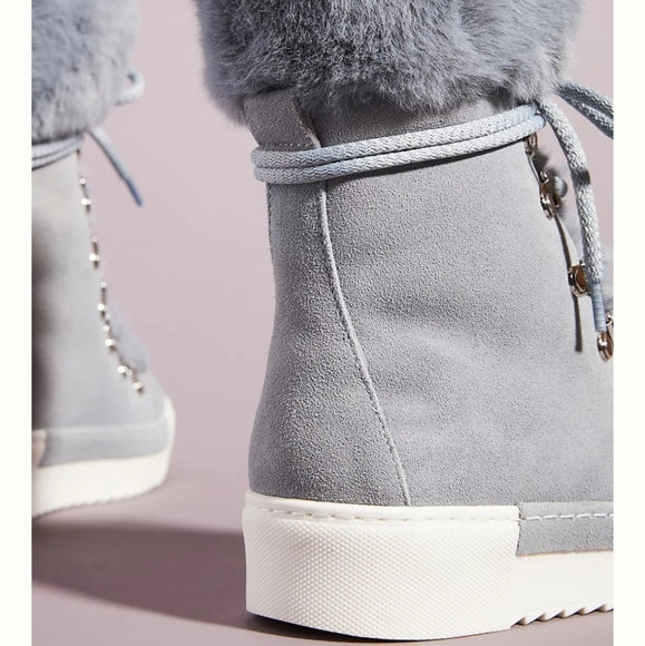 Cecelia New York Seymore Mid Blue Grey Weather Sneaker Fur Lace Up Fashion Boots